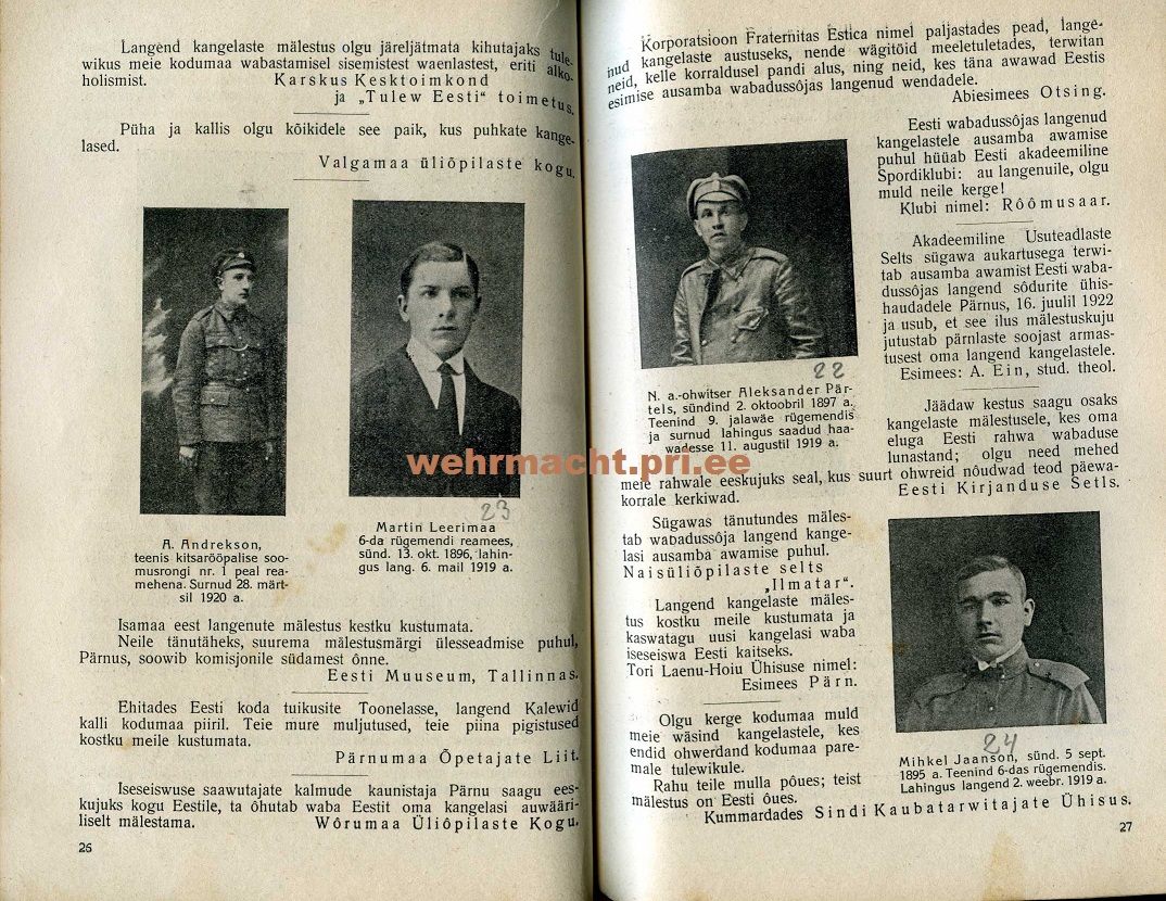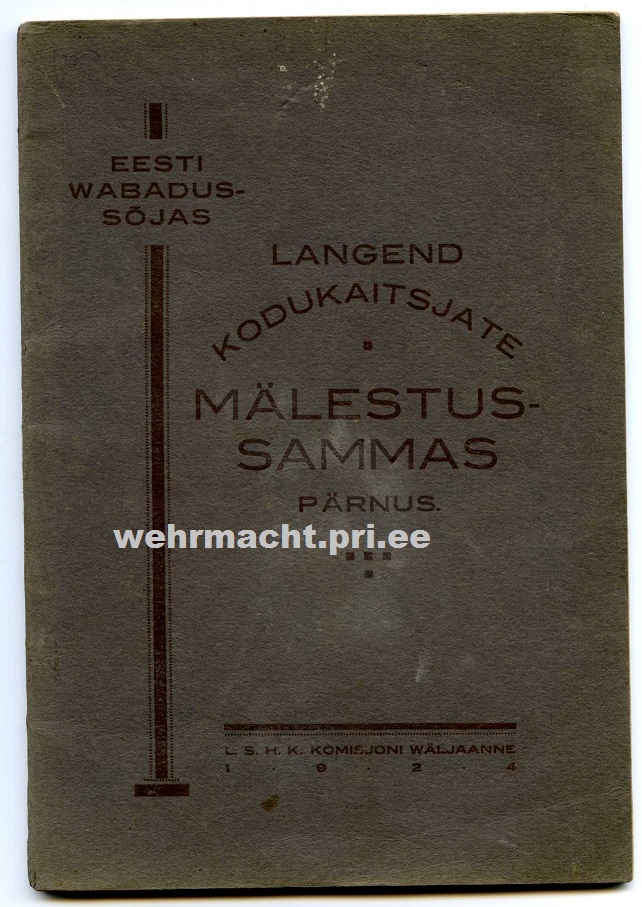 Ja Pärnust sai toodud selline tore raamat. "Eesti Wabadussõjas langend kodukaitsjate mälestussammas Pärnus" 1924.a. Väljaandja Langenud sõdurite haudade korraldav komisjon.