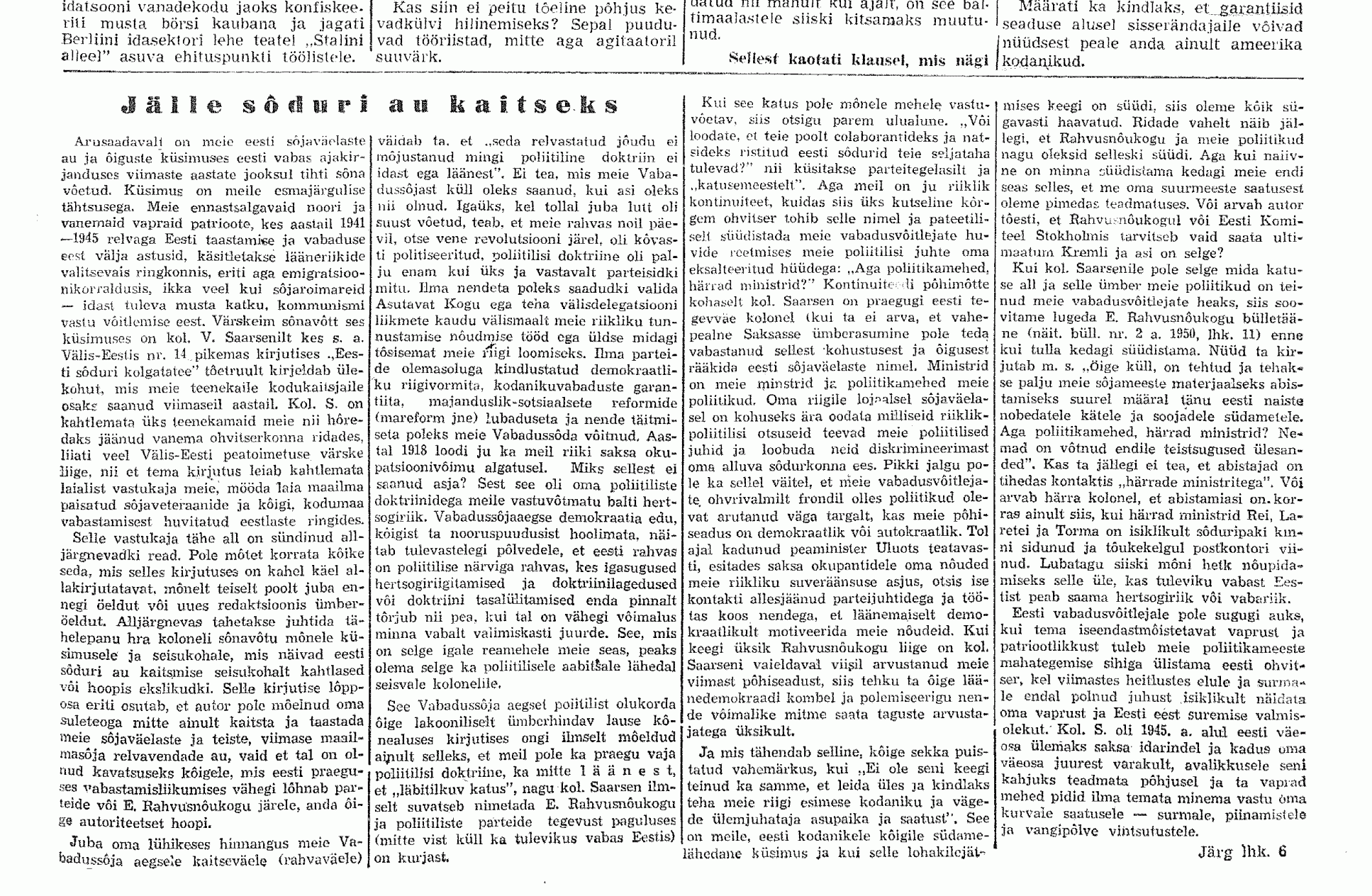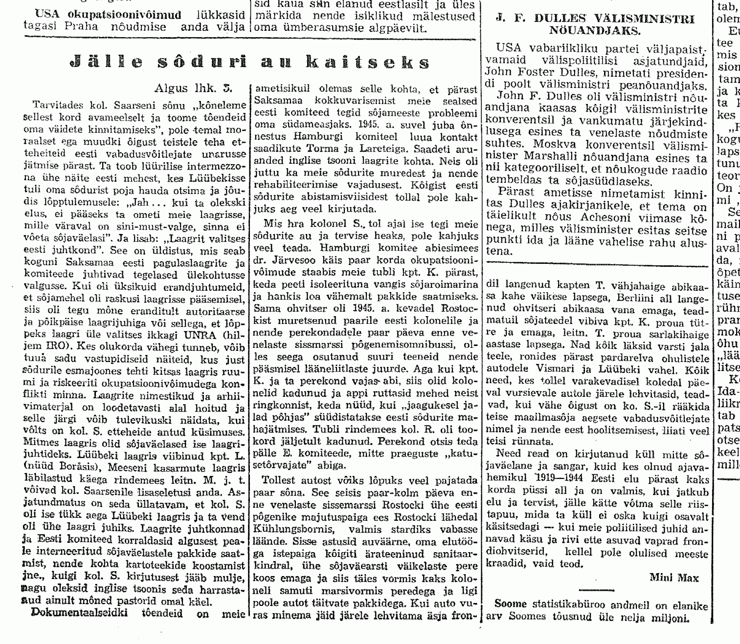 Esmalt üks ajalehekatke Eesti Teatajast 15.aprillist 1950