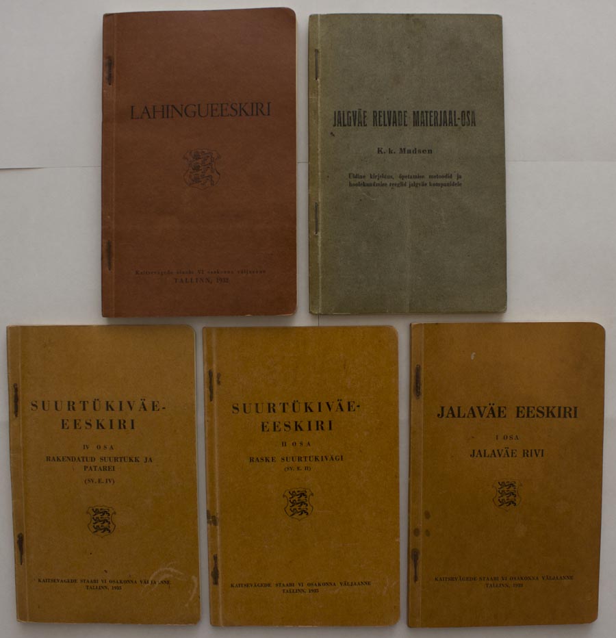 Üleval vasakul "Mida rahvawäelane oma püssist peab teadma ja kuidas temaga ümberkäima" on välja antud Vabadussõja ajal, 1919. aastal.