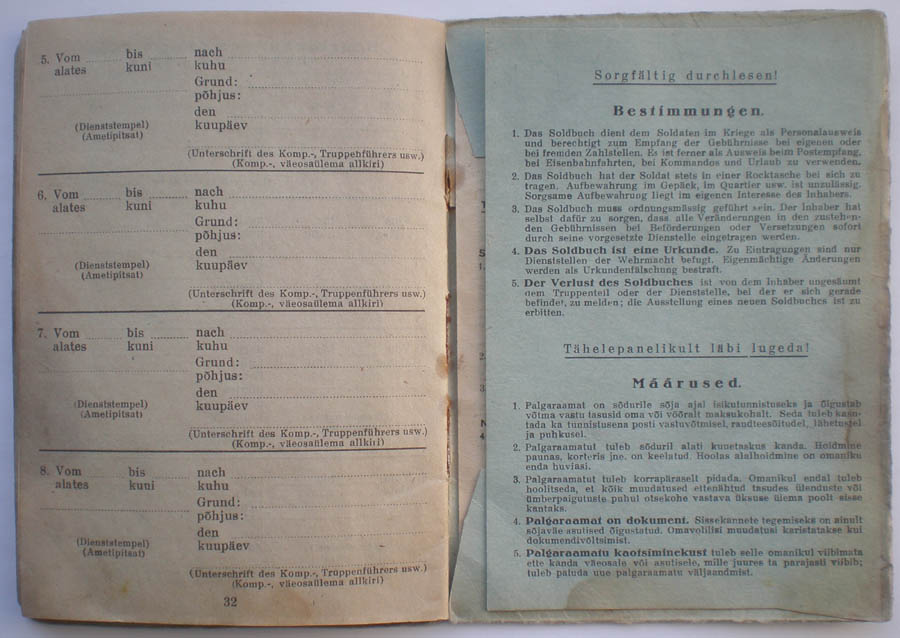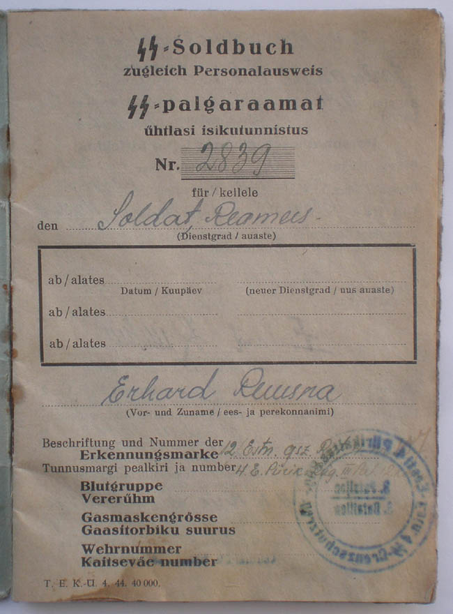 Need kahekeelsed W-SS Soldbuch'id mida ma siiani näinud olin on alati olnud valgete kaantega aga see Ruusna oma on selle poolest natuke erinev, et SB kaaned on rohekad.