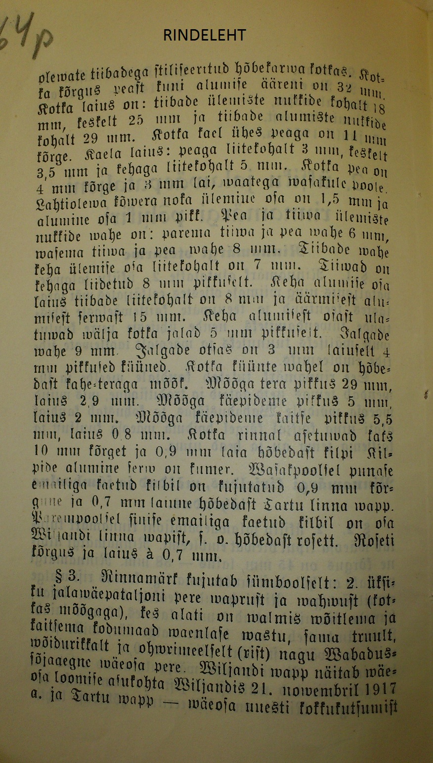 2.ÜJP Rinnamärgi põhikiri, kinnitatud 17. juulil 1934. a.