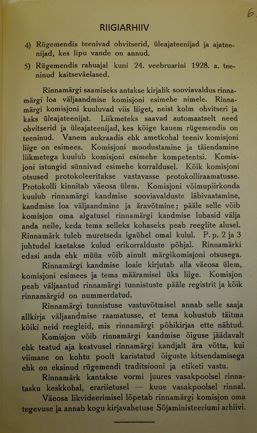 Samuti otsustait välja anda tunnistused kõigile neile, kes rinnamärgi kandmiseks loa saanud. Tunnistuste eest otsustati igalt tunnistuse saajalt kirjavahetuse kuludeks 50 senti sisse nõuda.