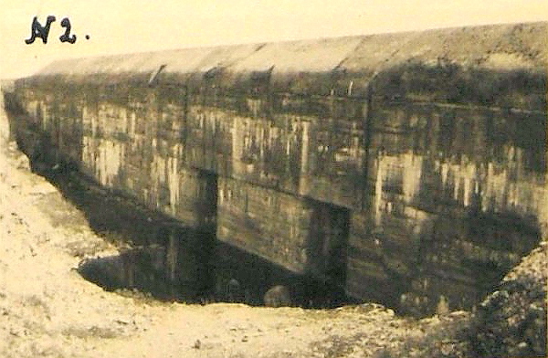 Lisan kaardi 1937. aastast, sellele on märgitud varjendid (väikesed punased ruudud), kaevikud, olemasolev rooduvarjend, rajatava rooduvarjendi süvend (punase punktiirjoonega ruudud) ja suurtükipatareide positsioonid.