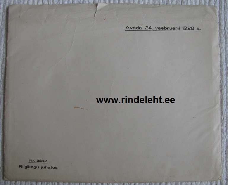Panen lugemiseks üles Riigikogu 1928. a kõne, mis loeti ette EW 10 aastapäeva puhul üle Eesti erinevatel üritustel. Huvitav lugemine. Kõne tohtis avada alles 24. veebruaril. Lisaks on veel üks ümbrik juhistega.