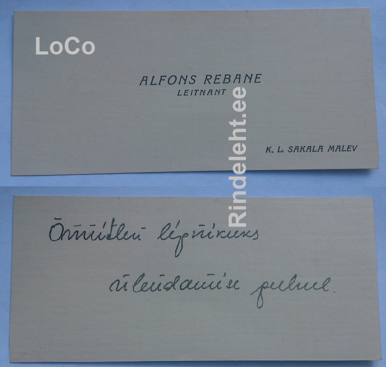LoCo kirjutas:Alfonsi visiitkaart aastast 1938. Õnnitleb Peeter Toomingat lipnikuks ülendamise puhul.