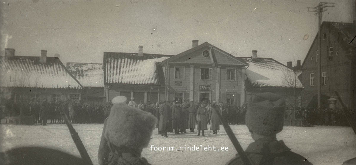Pakun välja, et ameeriklasi seal pole. On hoopis üks ameerika eestlane, nimelt Henry Reissar ja pilt on tehtud tõeoolest 24.02.1919.aastal Viljandis. Pildidl on kujutatud "Eesti Vabariigi Skautide Maleva liikmed paraadil" aka Vabariigi I aastapäev ja Scoutspataljon (Eesti Scout) ning sel juhul on normaalne näha ka Ameerika lippu, sest sel ajal olid nad veel üsnagi "ameerikalikud". Nii väeosa ideoloogia, mis järgis ameerika skaudiliikumise põhimõtteid kui ka väeosa juht oli sel hetkel veel USA kodanik Reissar, kes maksis poiste (sest poisid sel sõja etapil seal väosas enamasti olid) palga ja ülalpidamise, sestap olid sel etapil USA lipp ja muu sarnane sümboolika ootuspärane.