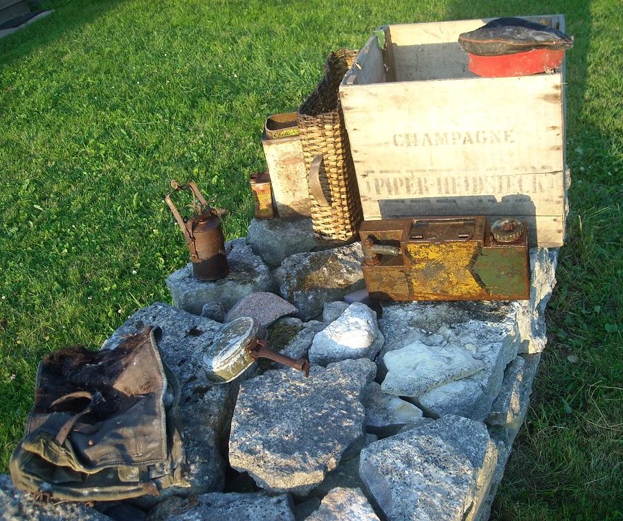 Mul ka mõned asjad mis enne ostmise lõpetamist ostetud. Enamus leitud ja kingituseks saadud. Viimaselt reidilt korjasin mõned roostes konservi purgid nalja pärast kaasa. Suuremal tuli Wehrmachti kiri alt välja. Peenem on miski Shveitsi sealiha vist. Kui keegi selle markeeringu järgi mis põhja all on oskab midagi ajajärgu kohta kommenteerida, siis oleks hea. Purke oli veel aga es viitsind tarida. Ega neid saa väga ilusaks ka enam.