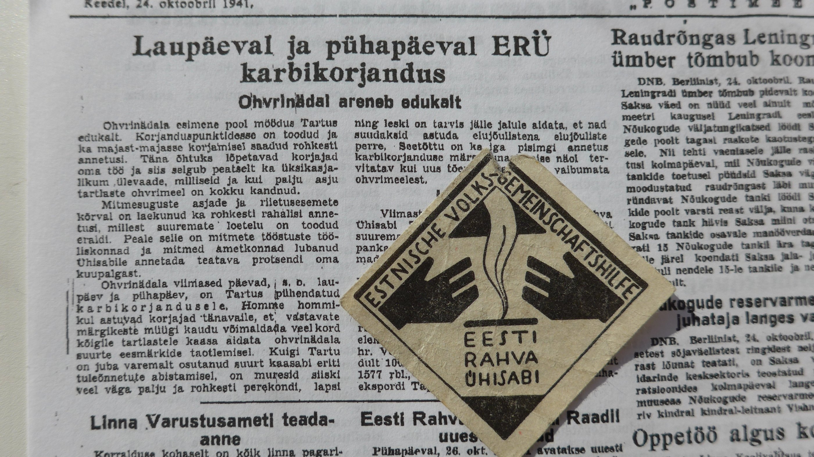 Natuke tarkust kogutud, mida tahaks jagada. Korjanduste loetelust on jäänud välja esimene, 1941 aasta oktoobri ohvrinädala viimastel päevadel (25. ja 26. oktoobril) toimunud karbikorjandus. Märke on erinevates värvitoonides. Aleksi uues raamatus on neist ilus pilt.