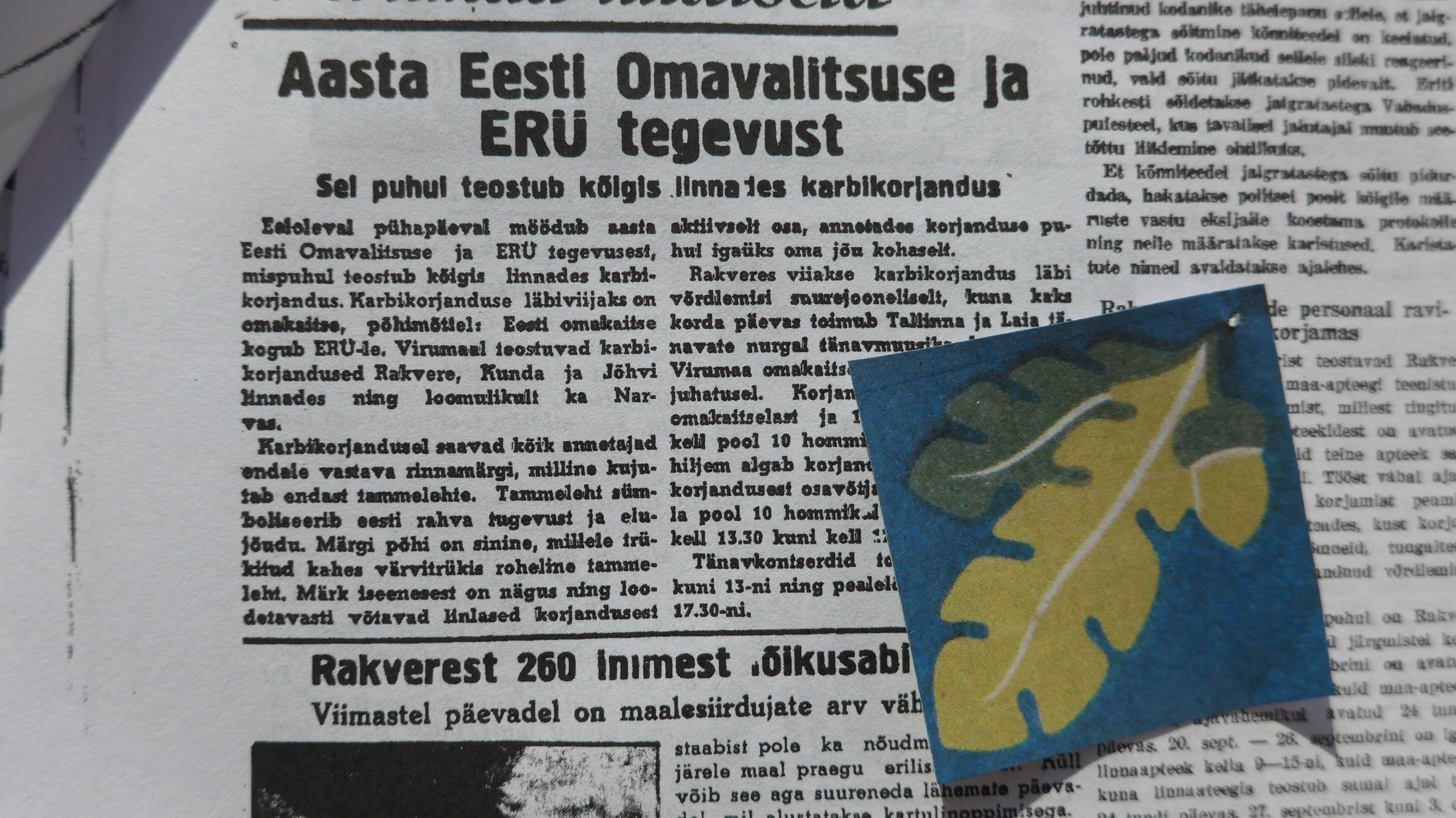 20. septemberil 1942 täitus aasta Eesti Omavalitsuse ja ERÜ tegevusest. Karbikorjanduse märk on selline.