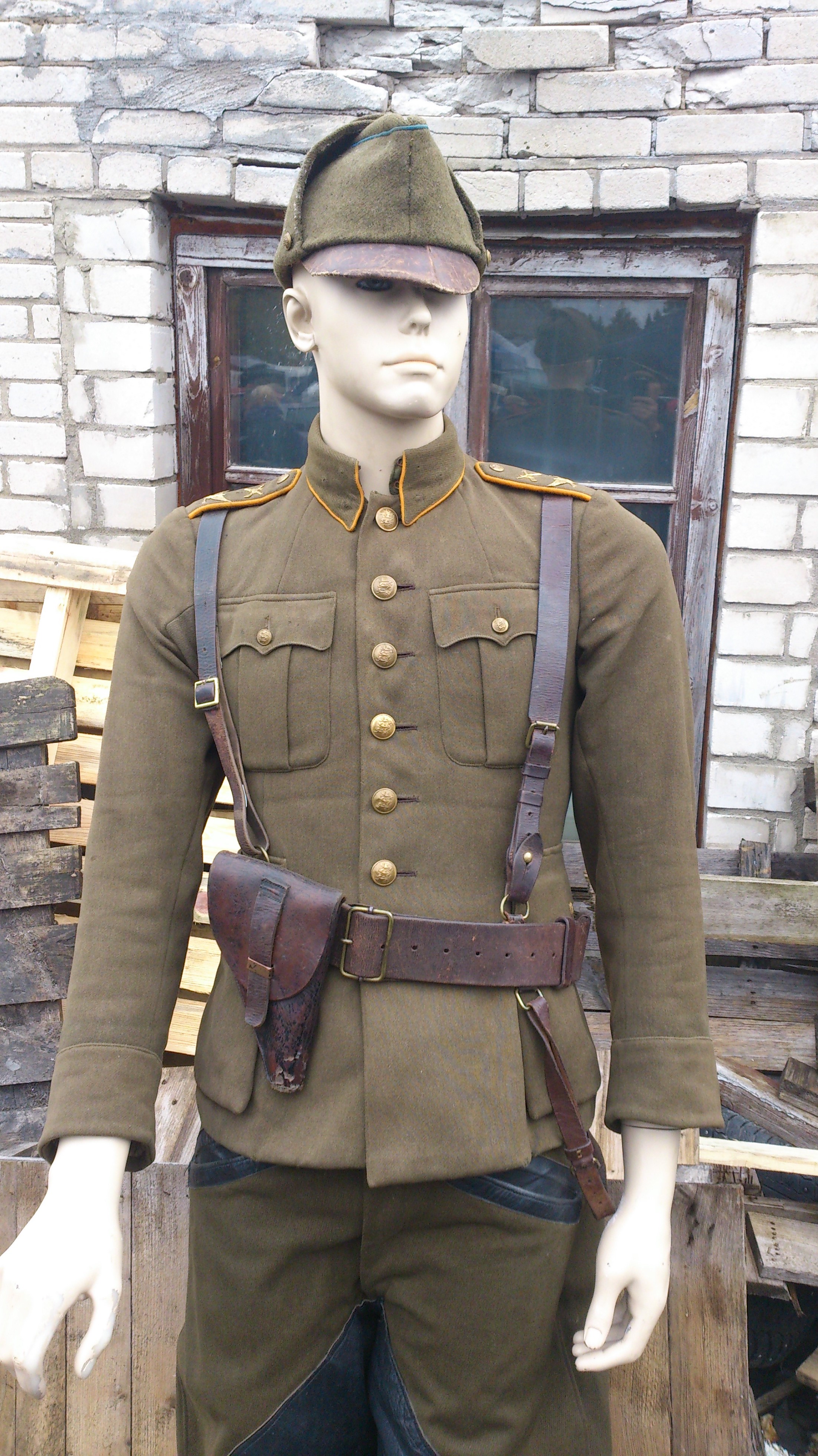 See trakside komplekt (isegi kui ajastuautentne) on vist siiski võitleja enda aretatud - tavalise portupeeõlarihmaga komplekti baasil siis? Sest meil ei olnud ju 30-tel sellist rihmakomplekti? Väikese vestluse käigus esemete omanikuga sain aru, et ta ise ei jaga teemast midagi. Suure tõenäosusega o...