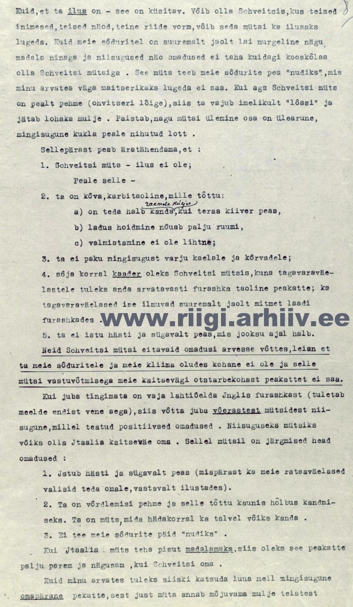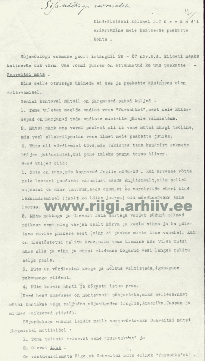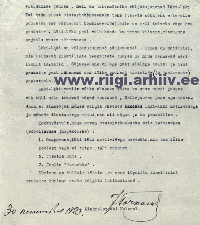 Tõrvandi nägemus mütsindusest enne Shveitzi (Anderkop) mütside kinnitamist 1924. aastal.