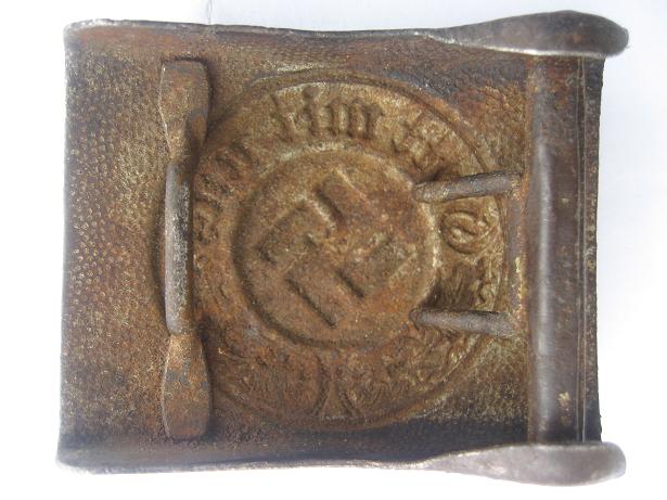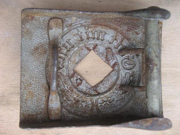 Rikutud raudpannal , arvata võib et markeering võis olla väljalõigatud haakristi peal