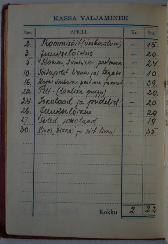 1934. aastal ajateenistuses olnud August Kimmel on pidanud väljaminekute üle väga täpset arvestust, siin mõned näited 1934. aastal kehtinud hindadest ...