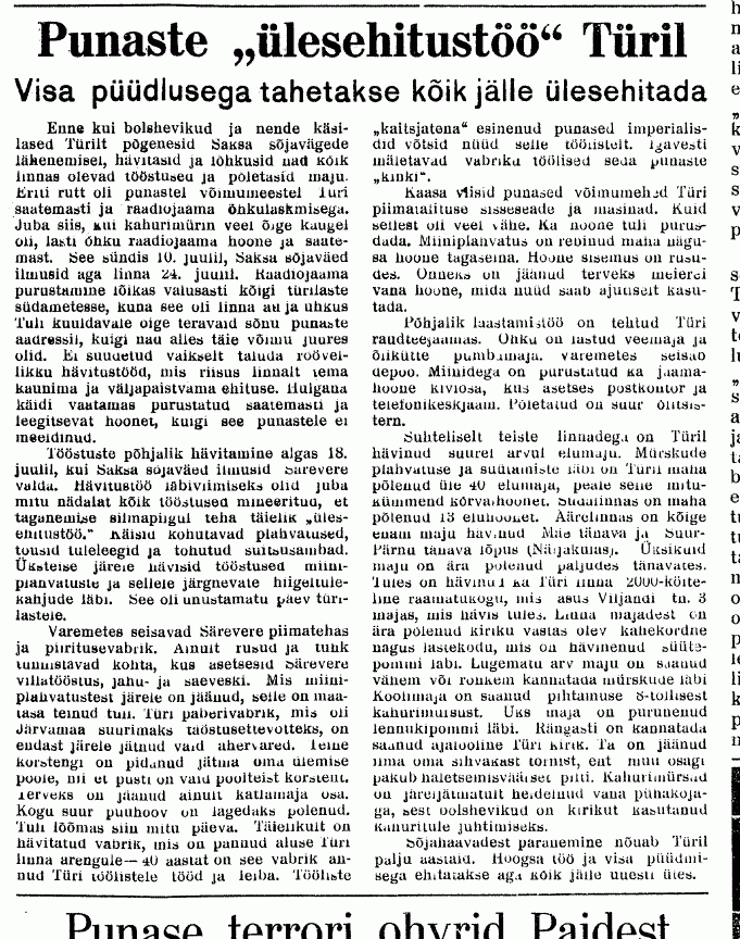 Näiteks oli täiesti töökorras kaks transformaatorit (300 kVA ja 10 kVA). Esimesest tõusis suurt kasu ka Türile, sest just sellega taastati linna elektrivarustus. /.../
