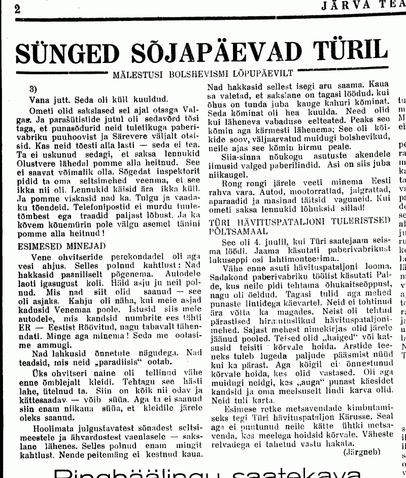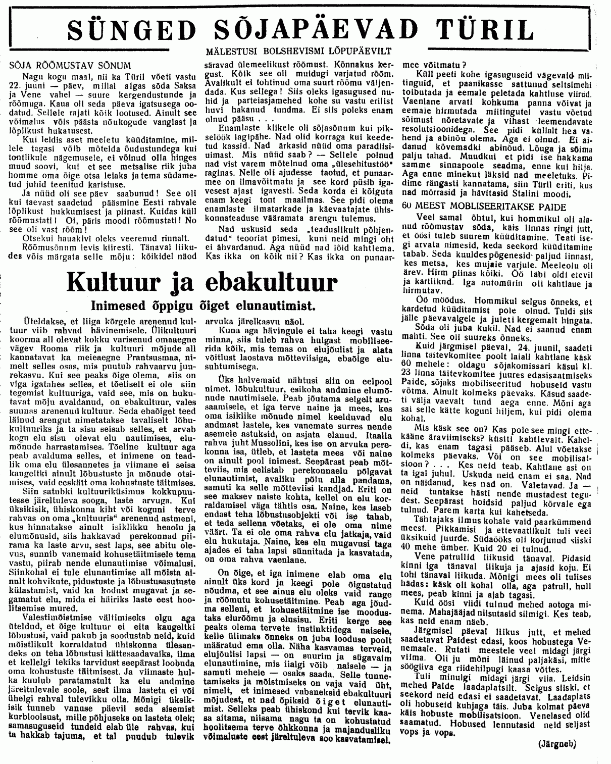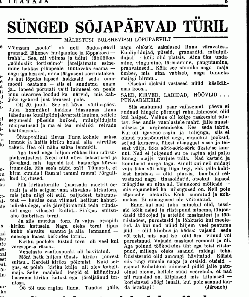 Natuke skänne "Järva Teatajast" september-oktoober 1941