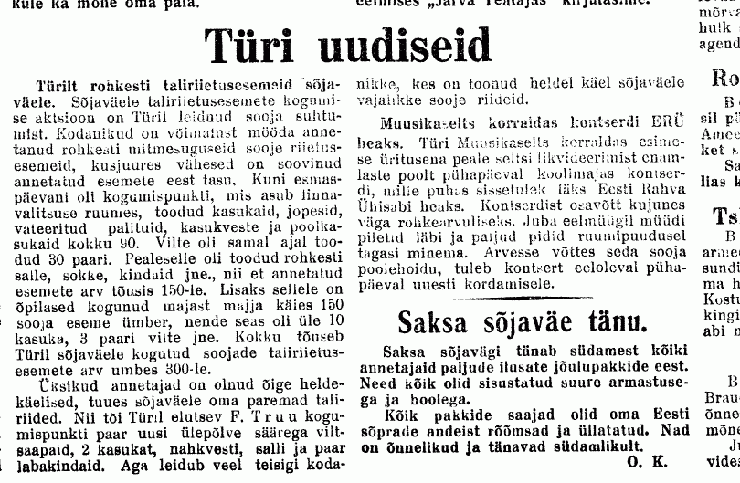 Raamatus "Türi. Kilde kihelkonna ja linna arengust III" (2006) kirjutab Viljar Valder sõjaaegsest saatejaamast muuhulgas: