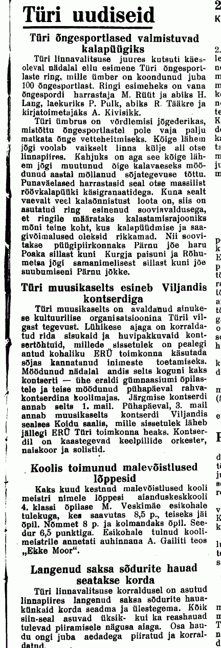 Ei mäletagi, kas ma neid artikleid juba postitanud olen aga esmapilgul ma neid siin ei näinud. Et siia on Türi teema kokku kogunenud, kaasa arvatud saatemast, panen ka siia.