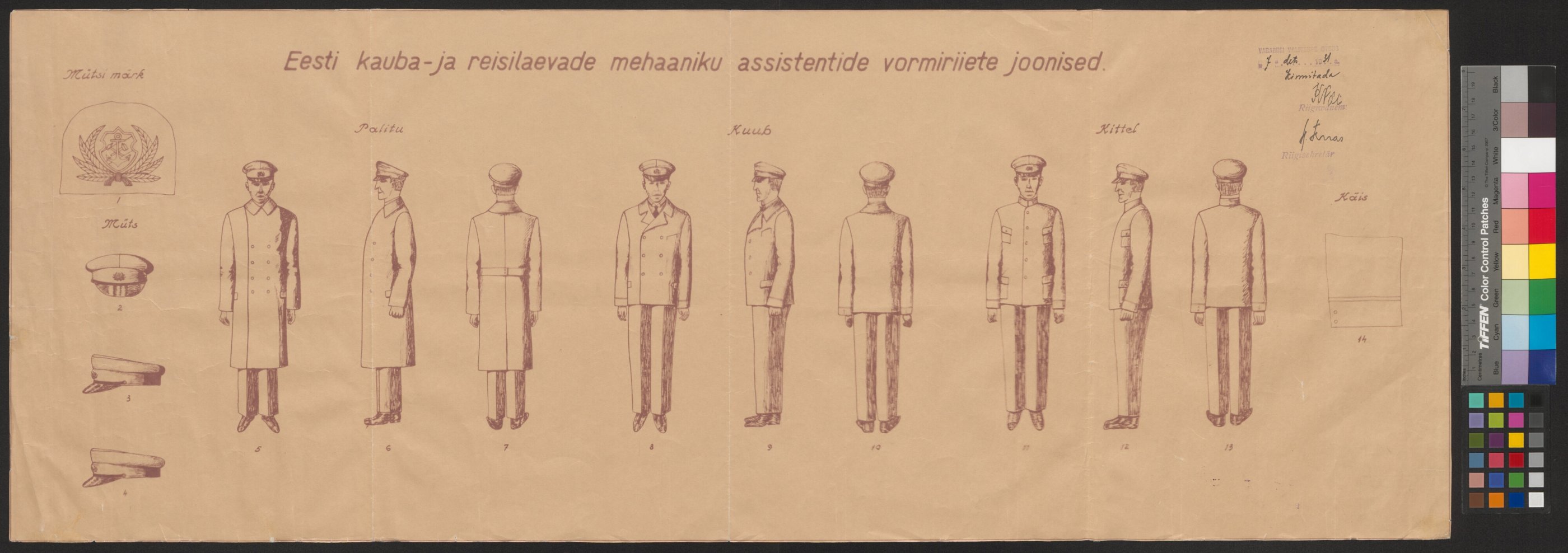 Eesti kauba- ja reisilaevade mehaaniku assistentide vormiriiete joonised 1931. a.