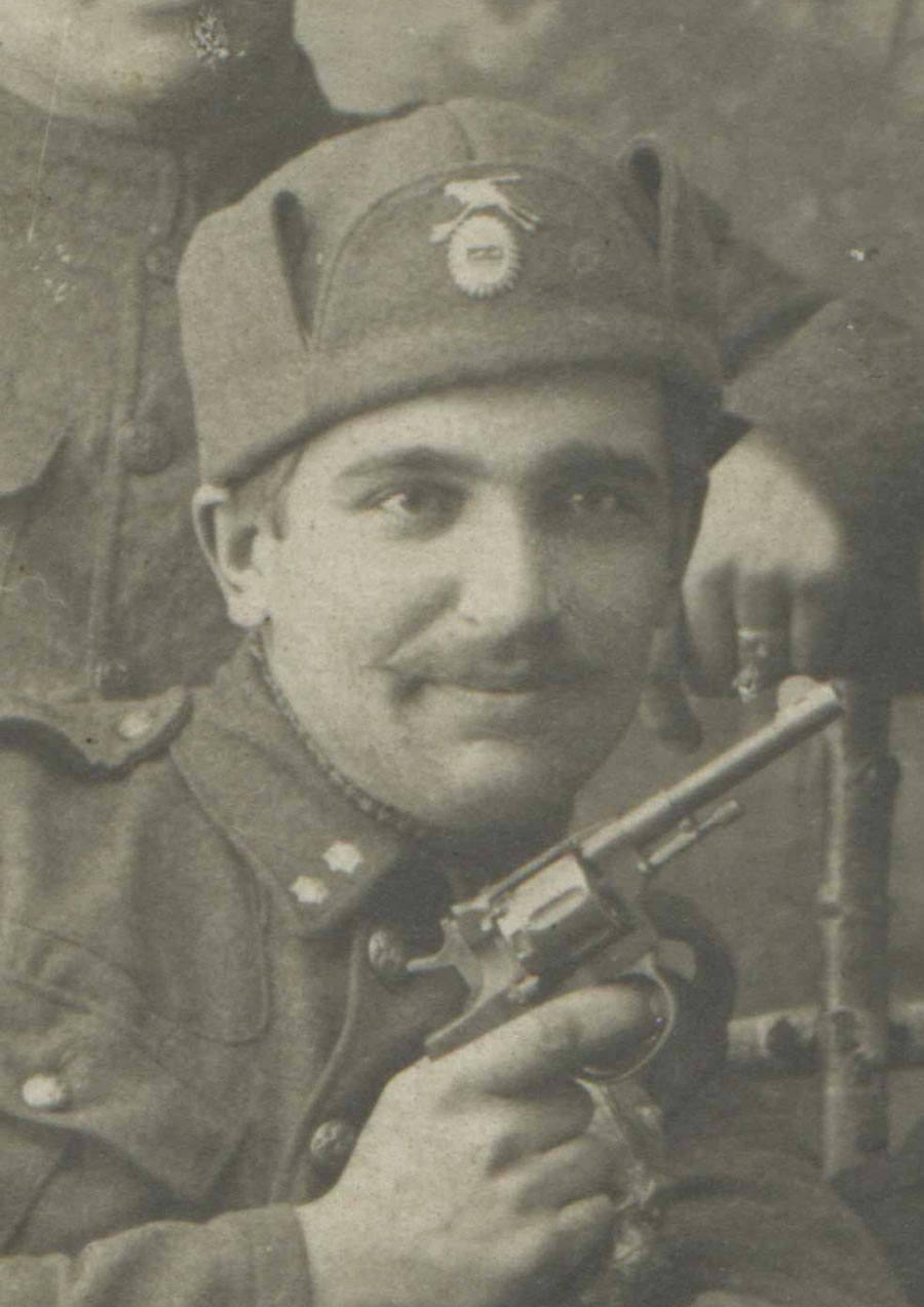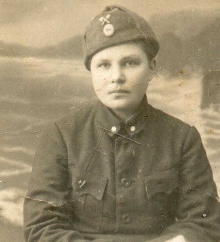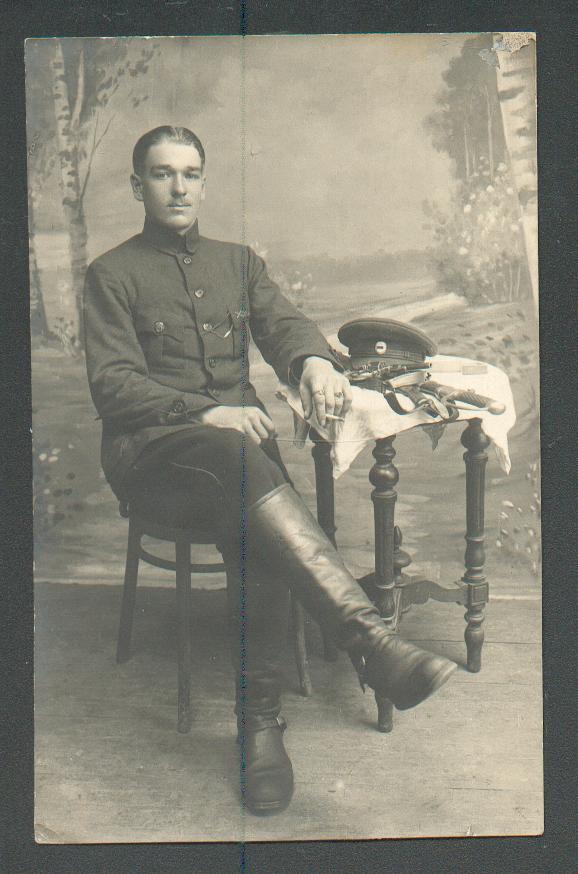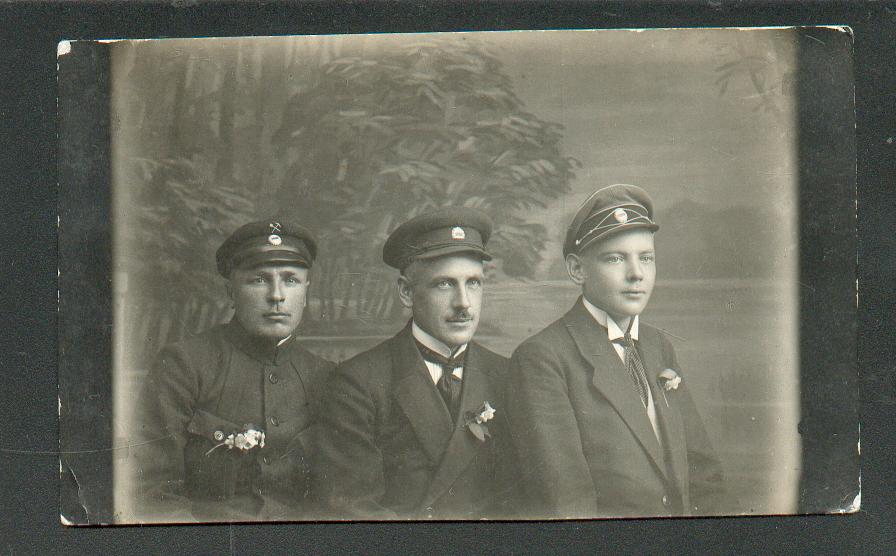 paar omapoolset pilti ka. Esimene läheb küll teemast välja, kuna aeg on ilmselt 1924-25 ja mütsil kantakse hoopis miskit tundmata kahepäise kotkaga märki. Õlakul on tal kas 9 või siis J.