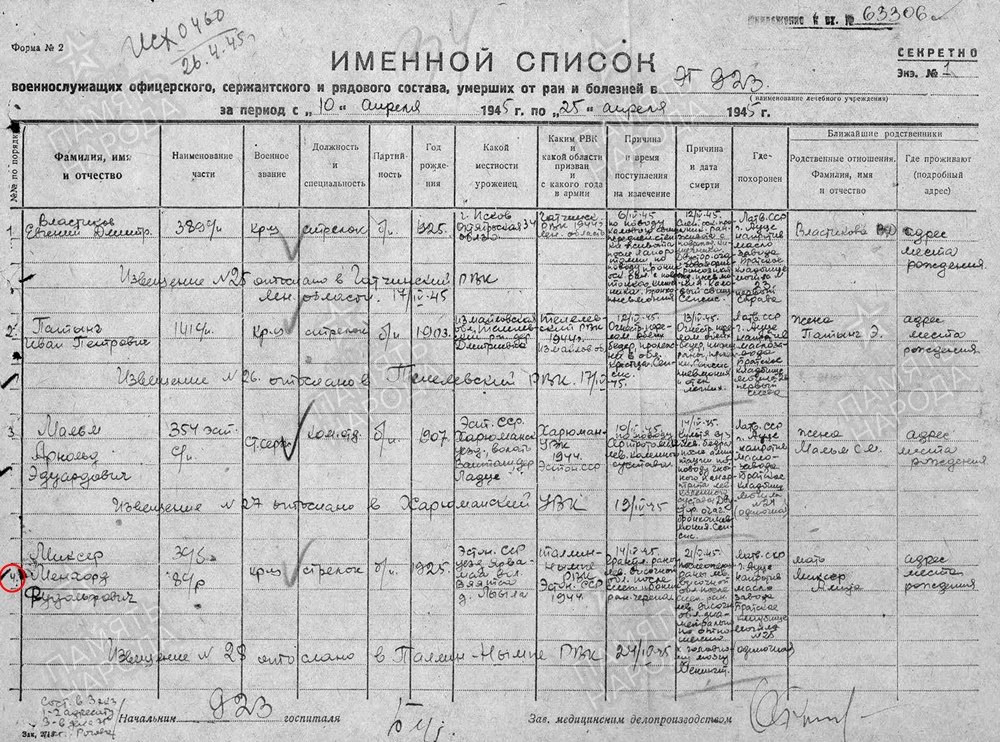 Kanda oma autasu ta aga ei saanudki, sest 14.04.1945 sai Miksar pähe raskelt haavata, suri nädal hiljem hospidalis, ning maeti 22.04.1945 Auce vennaskalmistule. Arvan, et orden anti koos ajutise tunnistusega üle kodustele.
