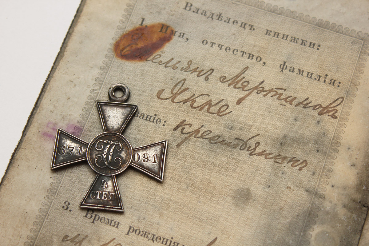 4. järgu Georgi rist (671 091), mis kuulunud väidetavalt Tõstamaalt pärit Jaan / Jemeljan Martini p. Jakke'le.
