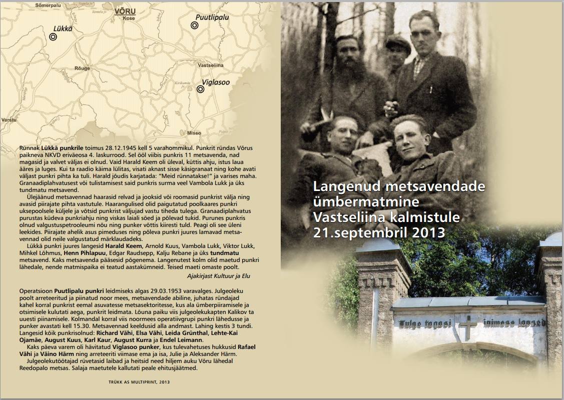 21. septembril toimub Lükkä ja Puutlipalu punkrilahingutes hukkunud metsavendade ümbermatmine Vastseliina kalmistule.