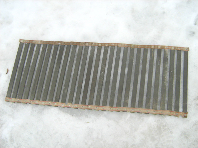 Mõõdud lahtiarutatuna: pikkus 113 cm, laius 45 cm. Tundub, et rest on kuulunud mingi transpordivahendi juurde. Schwimm- ja Kübelwagen'ite jaoks jäävad mõõdud nagu suureks. Kuna ese pärineb Tartu ruumist siis võiks ju isegi arvata, et tegemist on ehk veesõiduki "jalamatiga" ...