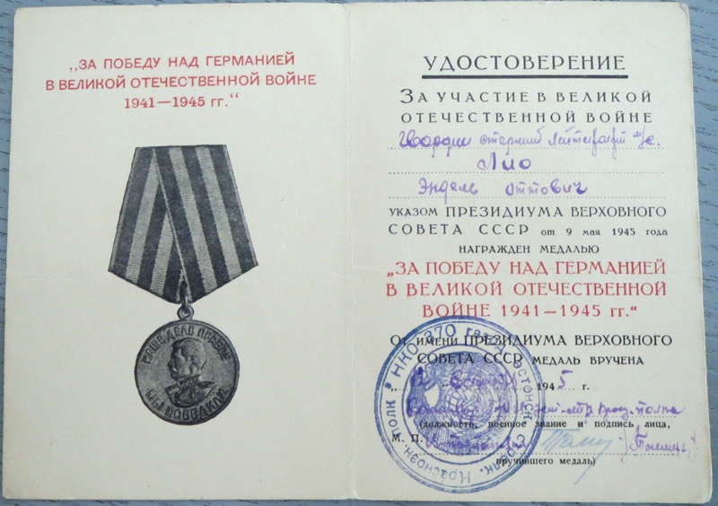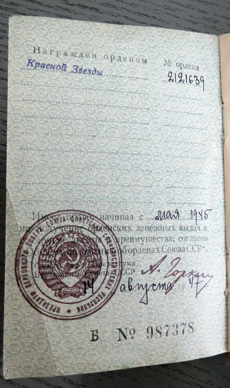 921 LP meditsiiniteenistuse vanemleitnant Endel Lio. Punatäht 2121639 on saadud Kuramaa lahingutes. Üsna lähedane number eelmise postituse Punatähele.