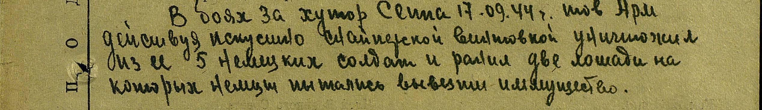 Raske on venekeelsest käekirjast aru saada. Kas saan õigesti aru, et slava ordeni 3. järk on omistatud Sepa küla lahingu eest 17.09.1944. Saan aru, et snaiprina lasi maha 5 saksa sõdurit ja vigastas kahte hobust... mis peale seda kirjas on? Keegi teab, et millist Sepa küla silmas peetakse. Kas Jõgevamaal Tabivere vallas?
