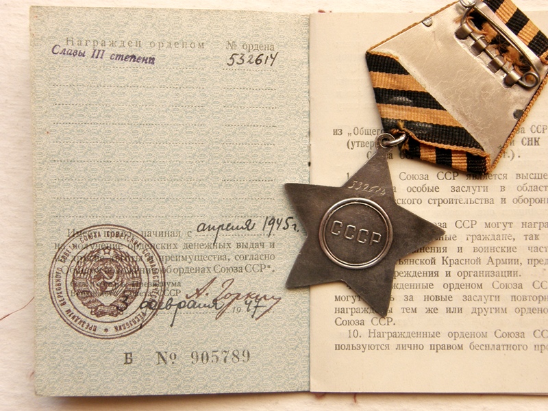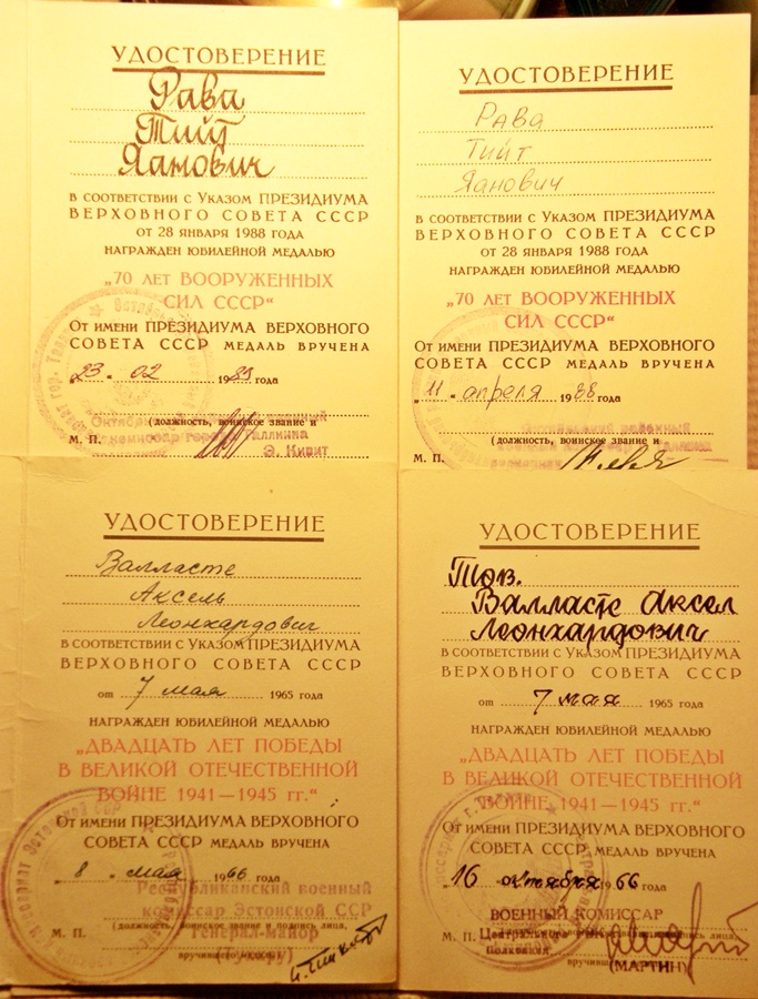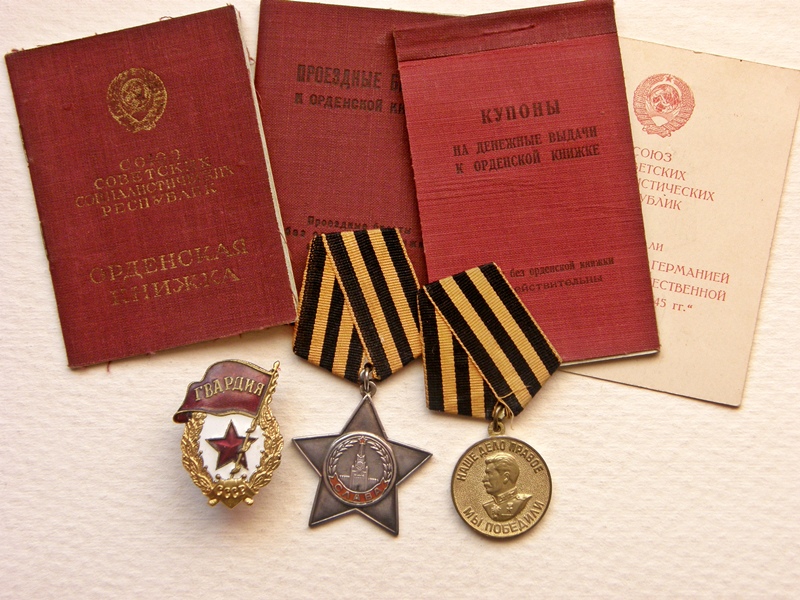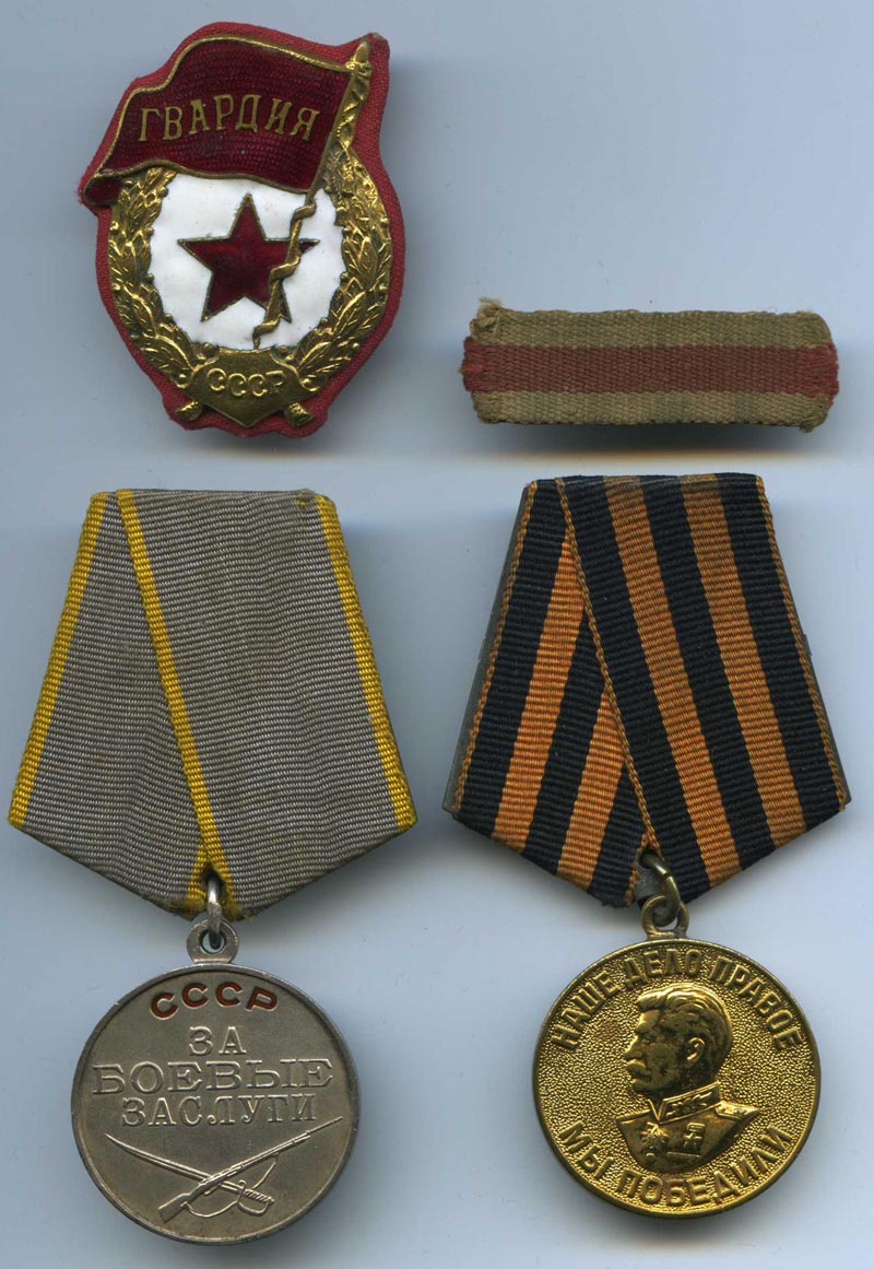 Punatäht 1 480 422, sõjaaegne "Gvardija", numbrita medal "Lahinguliste teenete eest" jne.