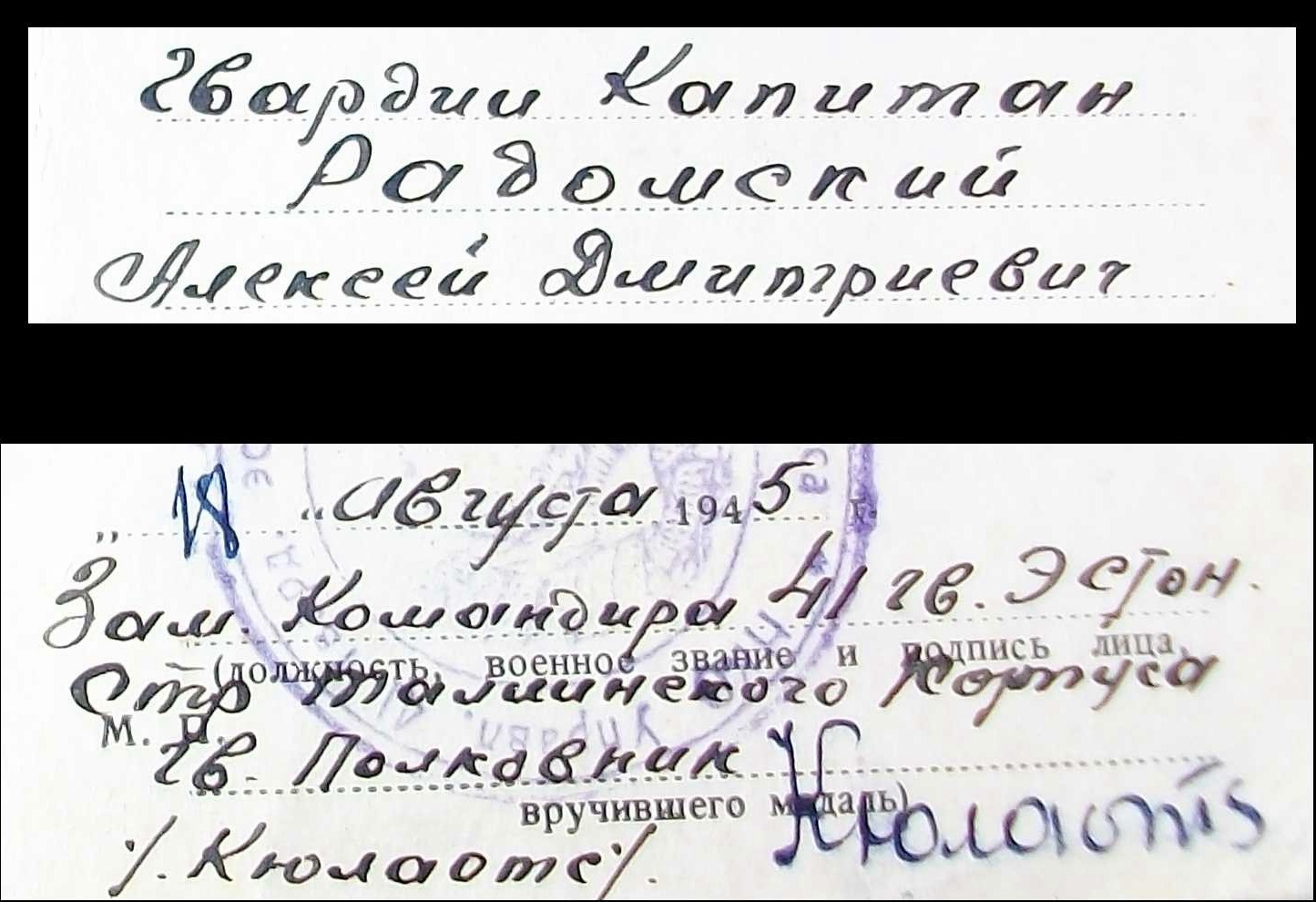 Kaardiväekapten Aleksei Radomski komplekt. Väga huvitav varane rippuv Isamaasõja II klassi orden ja Punatäht taas samast tuttavast sarjast 1480 ***.