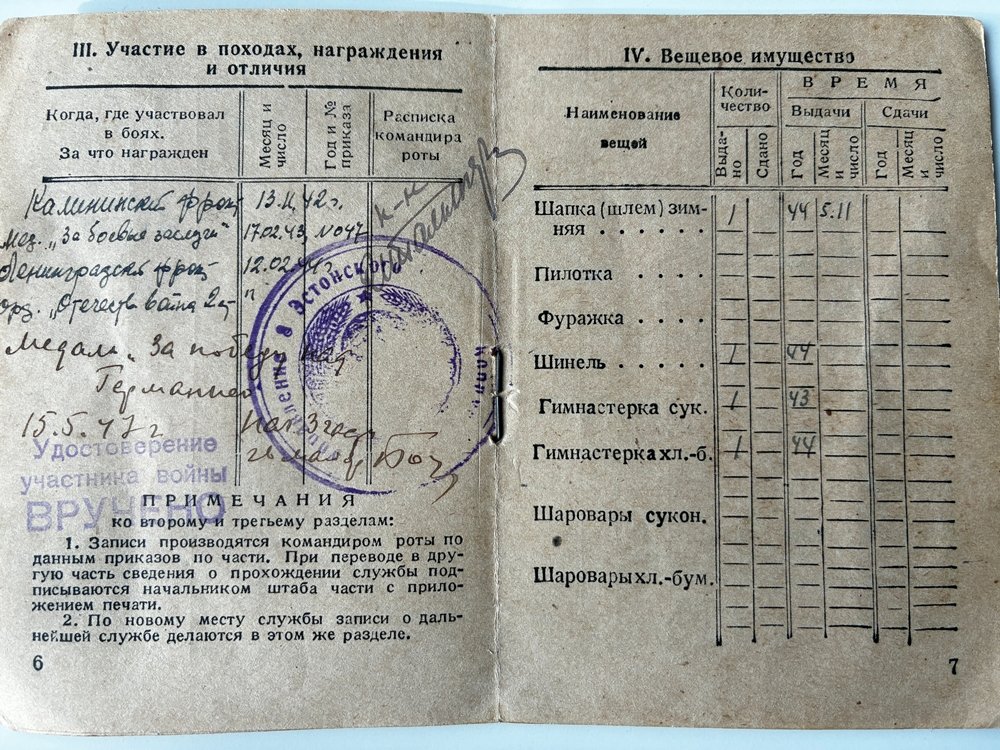 Lahinguteenete medal veel hetkel puudu, aga on lootust, et see leitakse üles. Autasulehelt: