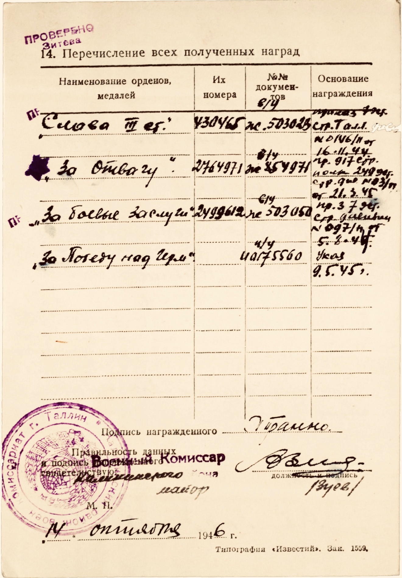 Ja need kaks dokumenti, mis sa postitasid on super! Pean leidma aega ja lisama kõik need ordenid/medalid oma arhiivi. Tänud!