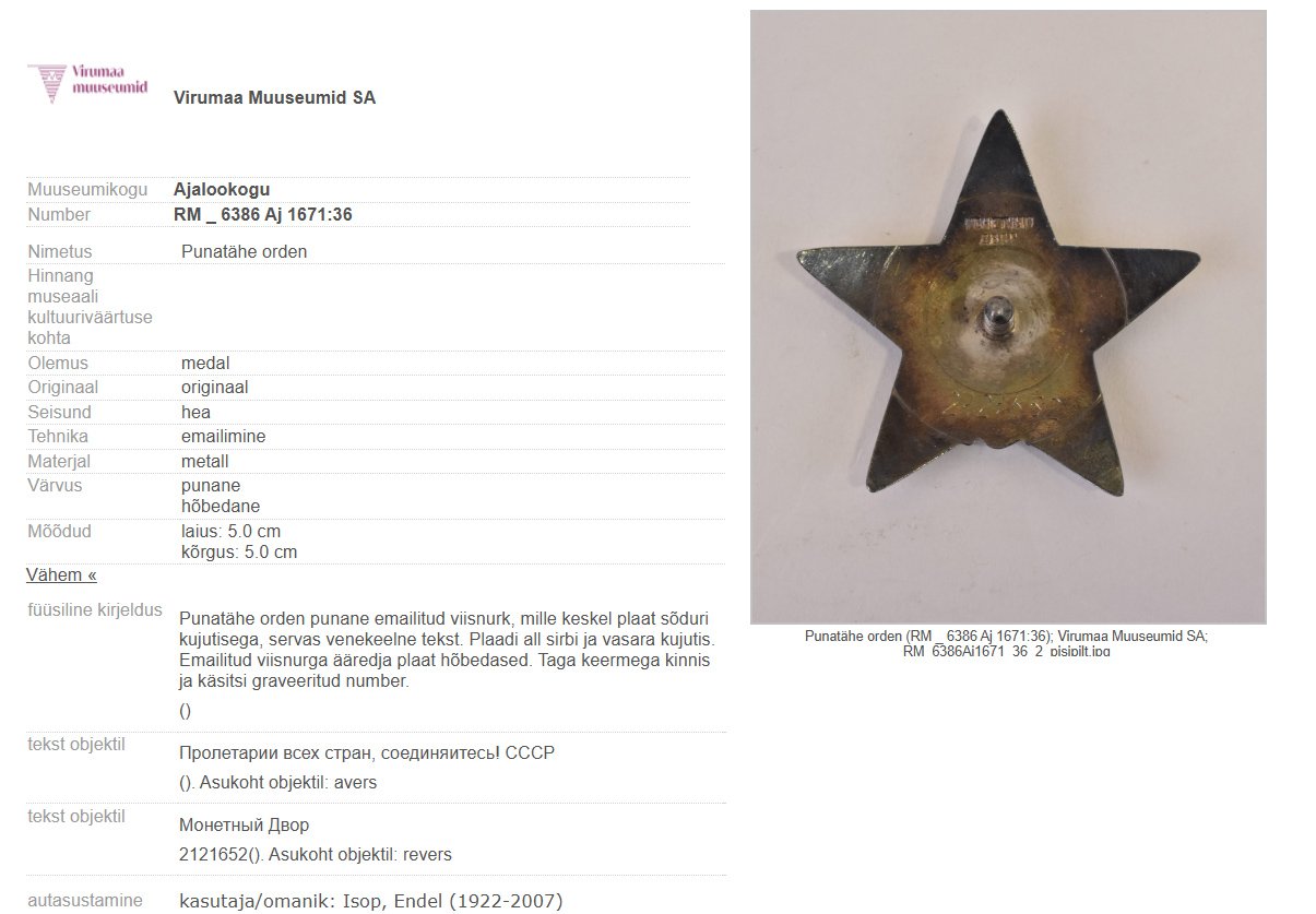 Oksjonikeskkonnas punatäht 2942549, ilmselt antud kellgile korpusest haavata saamise eest. Aastaid tagasi postitati siia teemasse punatäht 2942597.