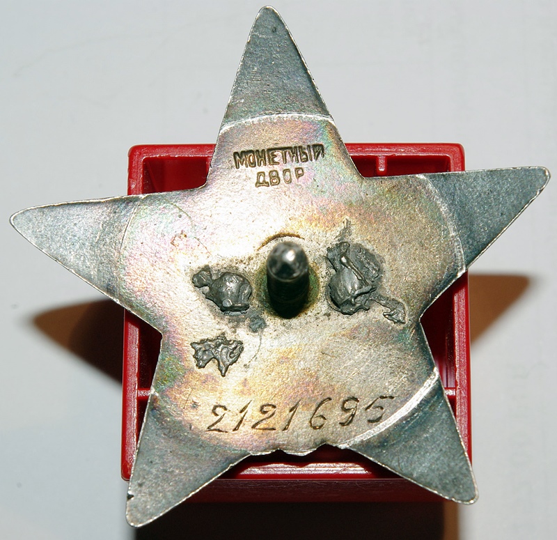 Lähedal asuva numbriga ( Kuld 2121843, see siin 2121695, samas teemas veel ka nooremleitnant Tumme 2121616 ) eestist pärit Punatäht, mis olen üsna kindel, on samuti Laskurkorpus. Autasustamise aeg Veebruar/ Märts 1945, koht Kuramaa. Autasustatu hetkel küll teadmata.