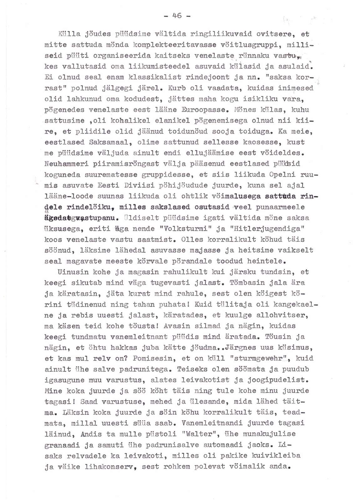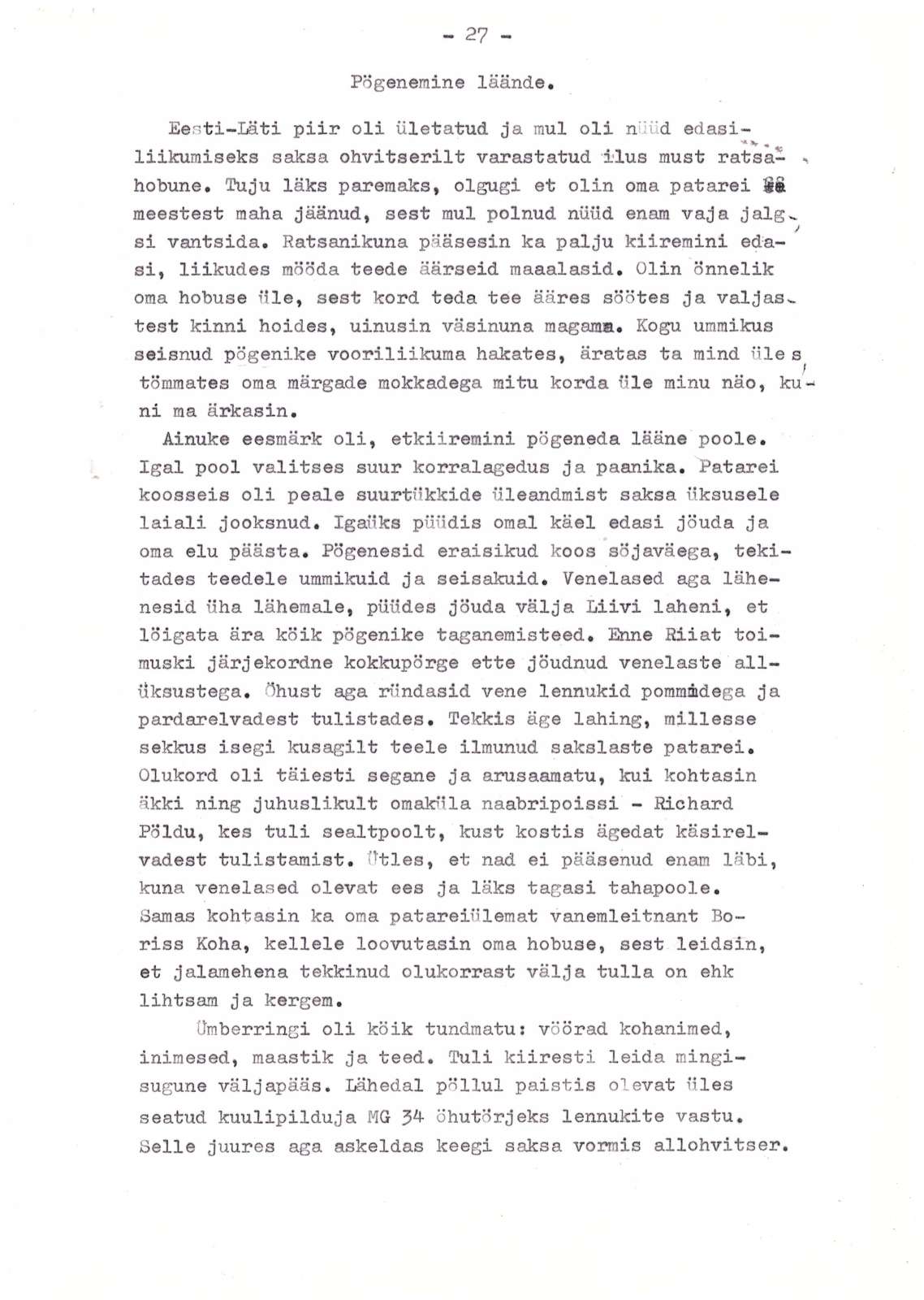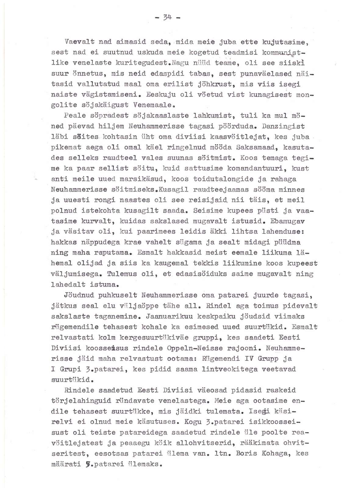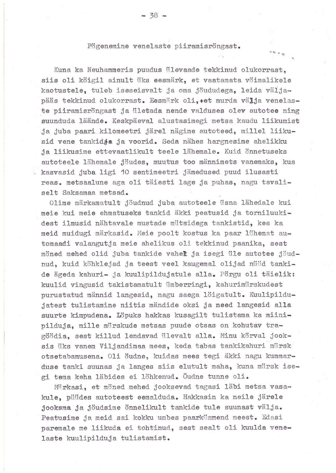 Ühe Manalateele läinud Muhumaa ajakirjaniku asjade hulgas oli papka ( kahjuks alguse ja otsata ) sellise rindemehe jutuga. Rindemees ise ka Muhu päritolu.