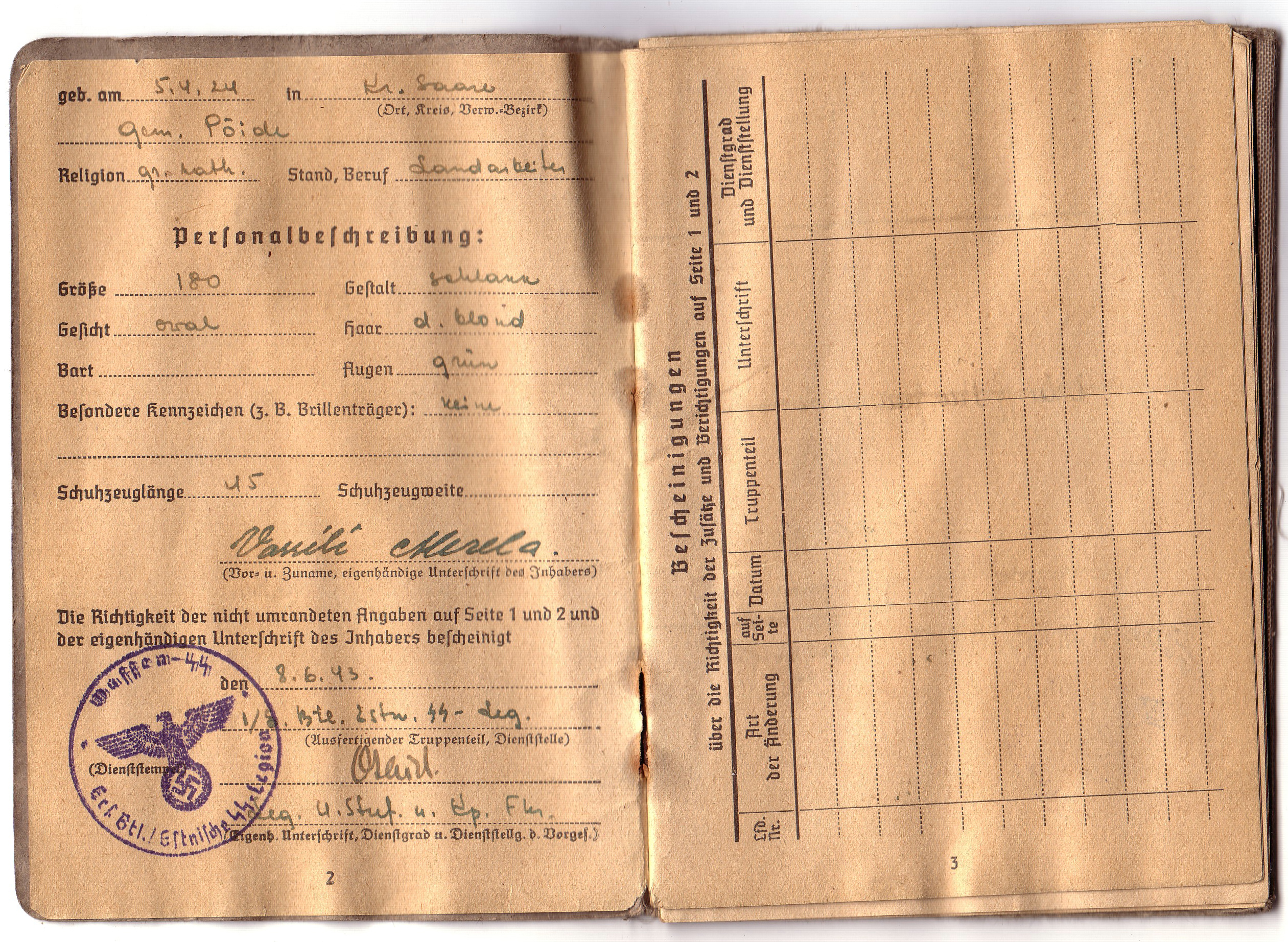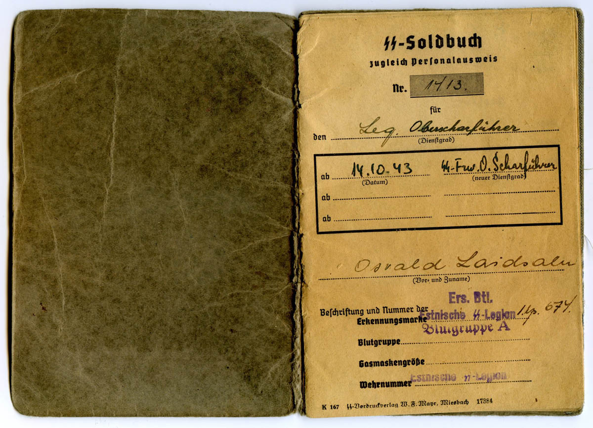 Üks asine rindemehe Soldbuch - SS Freiwillige Oberscharführer Osvald Laidsalu.