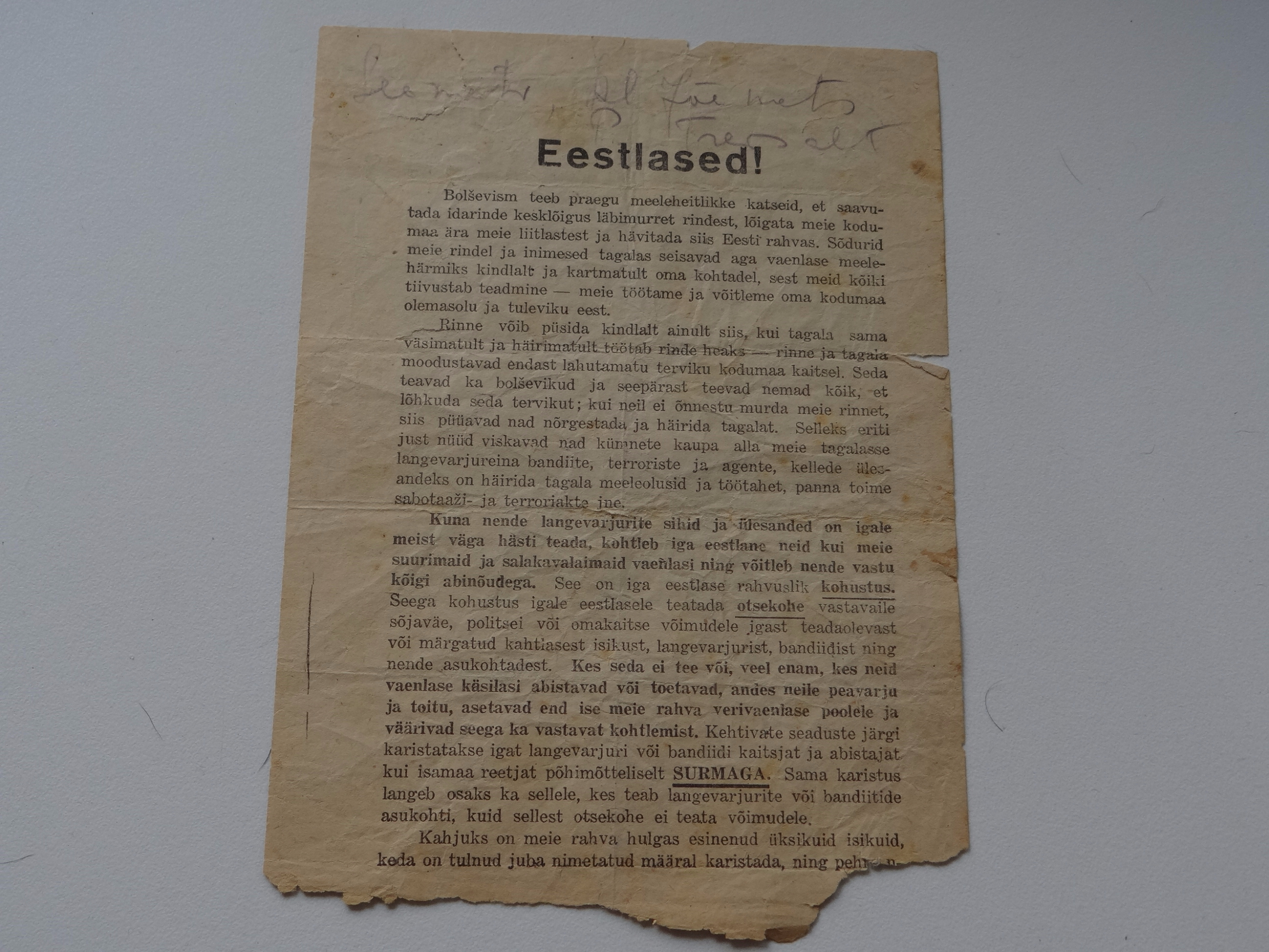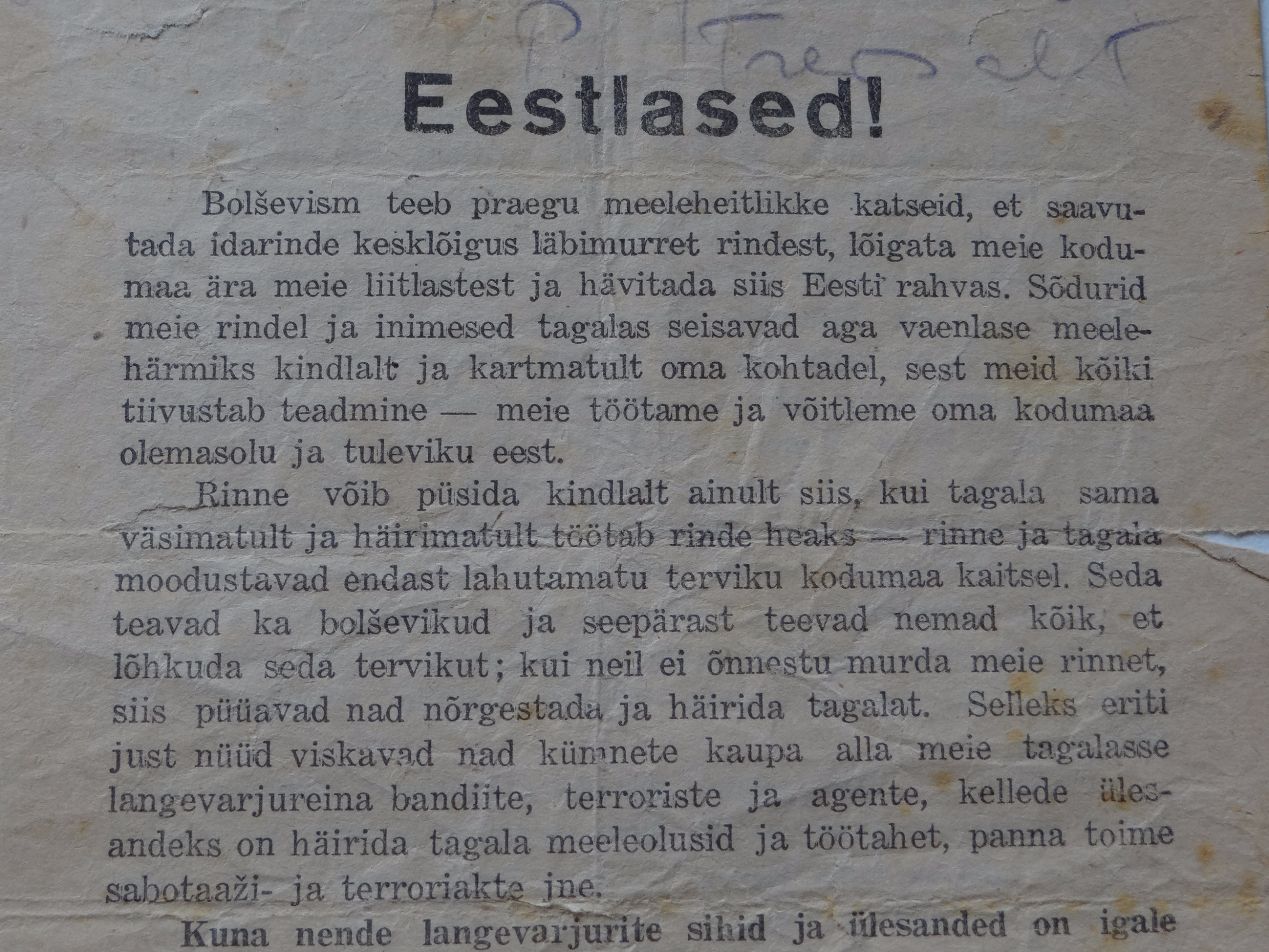 leidsin Eesti vabadussõja 2 osa raamatu vahelt selle lendlehe.