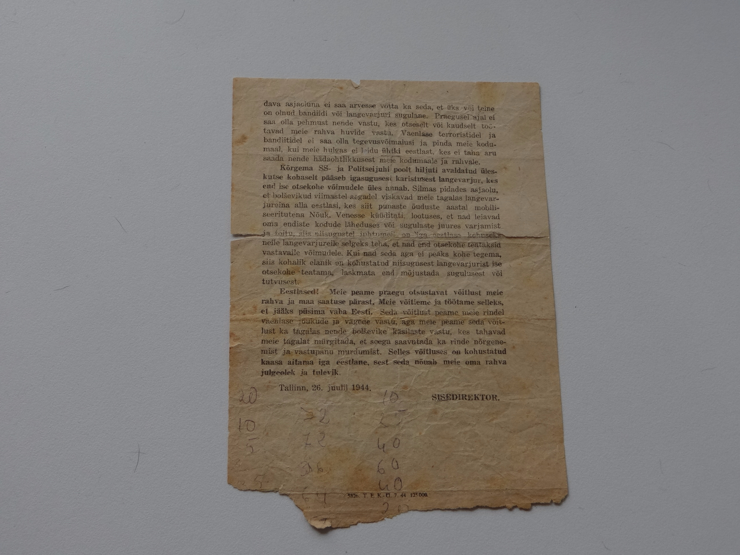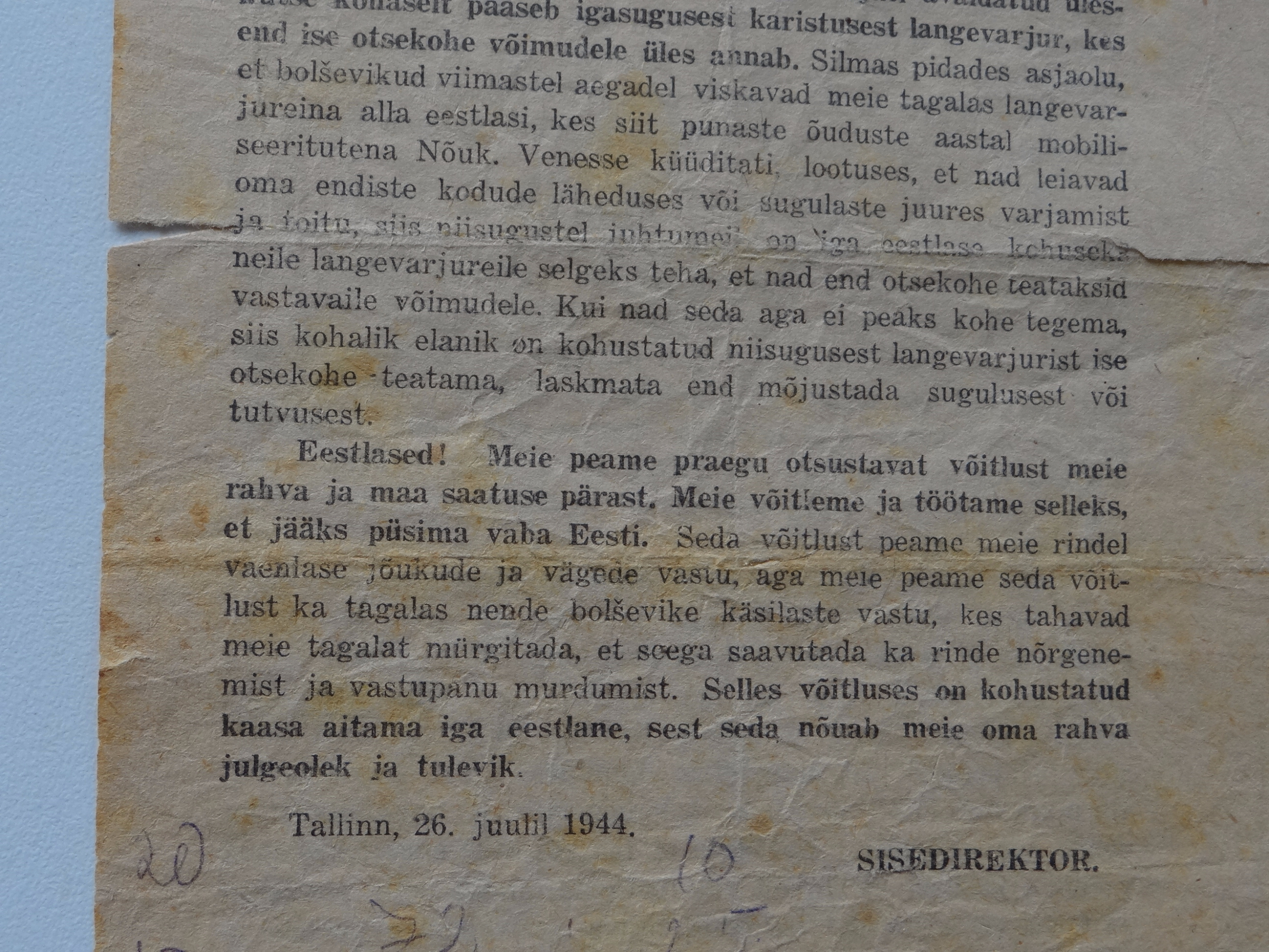 Agitatsioon lendleht. 26.7.1944a. sisedirektor.