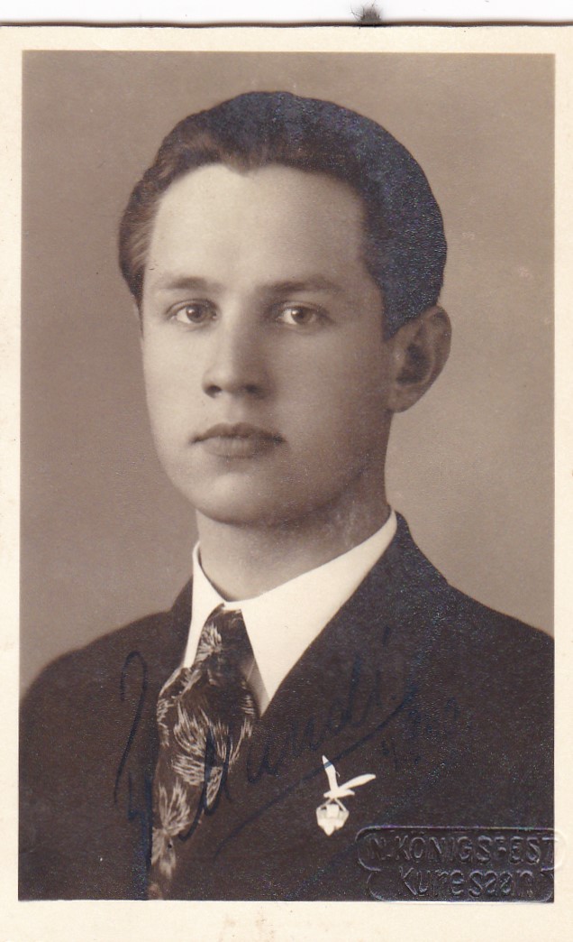 Kuressaares tehtud foto.Kas rinnas võib olla kooli märk. Saaremaa vapp ja kajaksa tiivad laiali.
