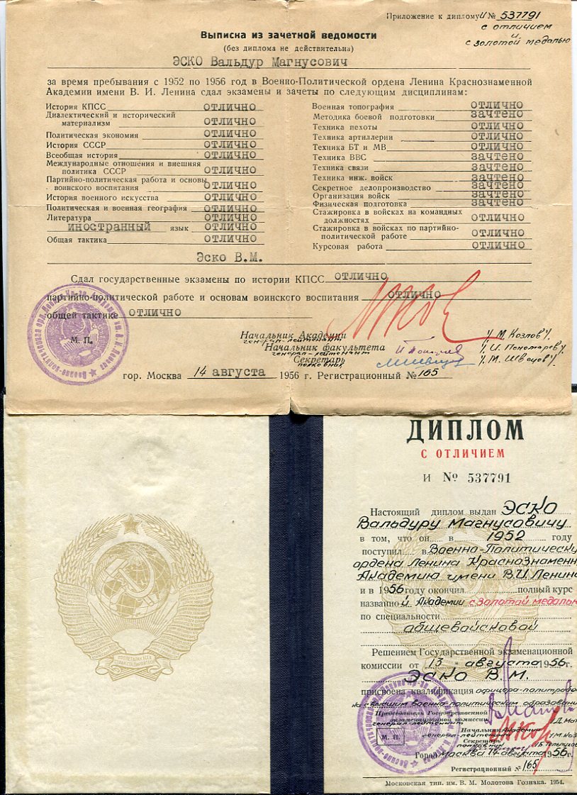 Lenini ordeniga Punalipulise V.I. Lenini nimelise sõjalis- poliitilise akadeemia kiitusega lõpetaja medal