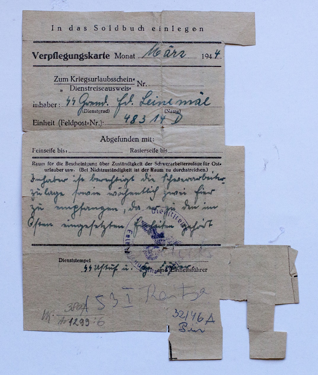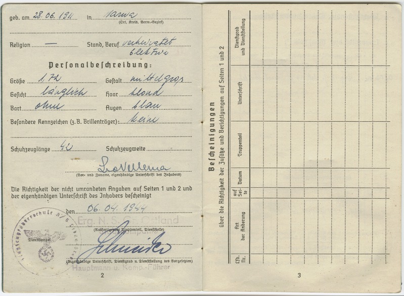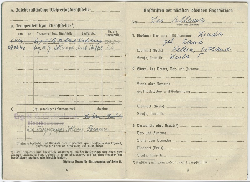 skulmars kirjutas:Allohvitser Leo Vellema palgaraamat (Soldbuch)