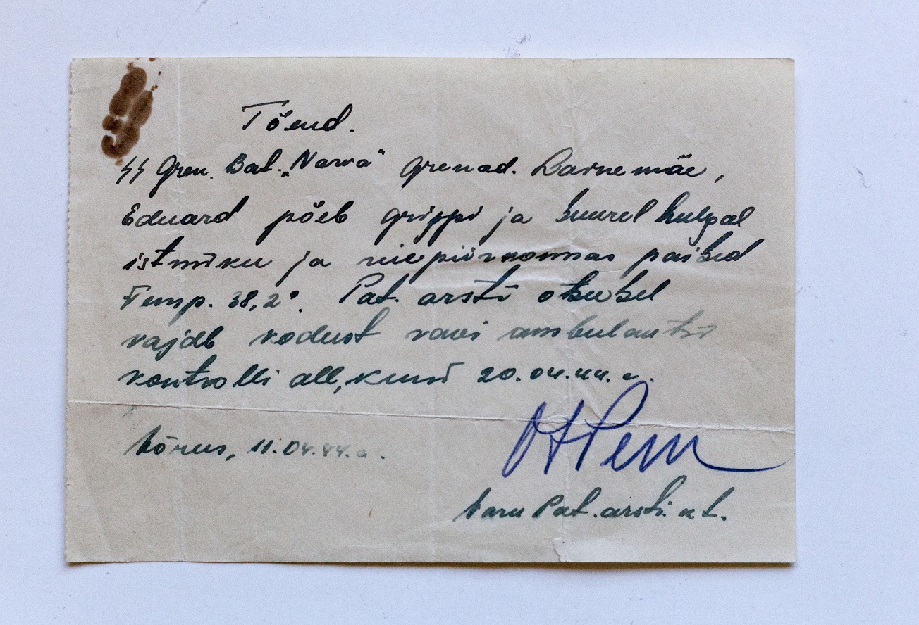 UnterKroon kirjutas:Eelpool kõne all olnud pataljon "Narwa" 3.kompaniisse kuulunud SS Grenadier Eduard Lainemäe Soldbuch ning muud dokumendid ja esemed.