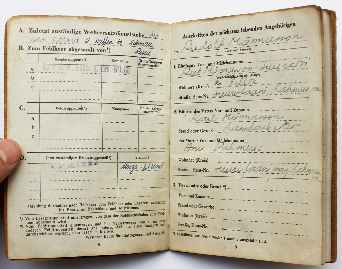 Leutnant Remi Milk'i Soldbuch Eesti Sõjamuuseumi kollektsioonist ...