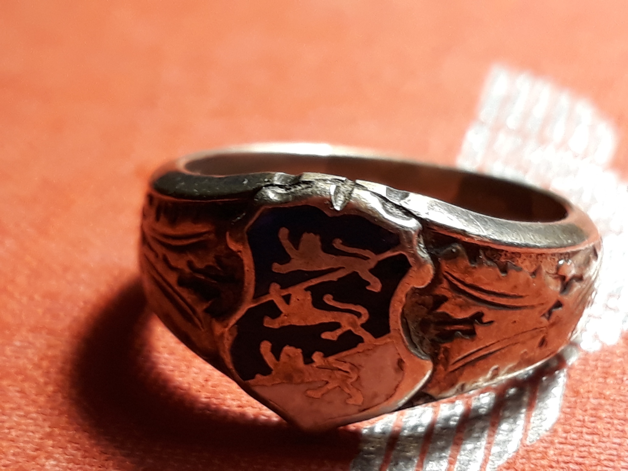 Kolmas on siit foorumist juba läbi käinud lõvidega (leopardidega) variant. Samasugune sõrmus oli ka idapataljonides, ainult vapikilp oli erinev. Tegumoelt meenutab väga tammelehtedega sõrmust ja ka vapikilp on minu meelest sama.