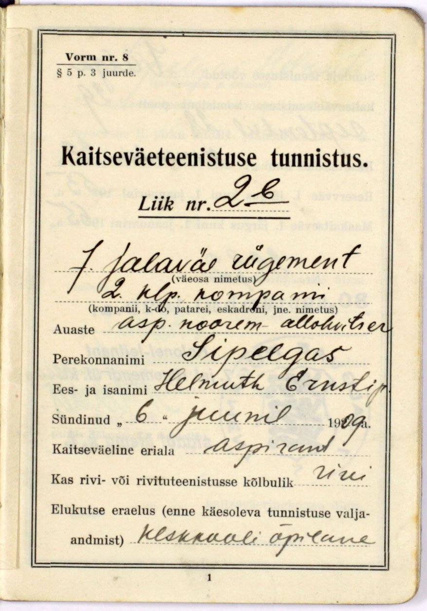 Pärast kooli laialisaatmist enamlaste poolt 1917. aasta detsembris tuli tagasi Eestisse. 26. veebruaril 1918 ilmus ta Eesti sõjavägede intendantuuri valitsusse, kus määrati raha-arveosakonna kirjutajaks. 1918. aasta kevadel saadeti intendantuur Saksa okupatsioonivõimude poolt laiali. 18. jaanuaril 1919 asus teenistusse Tallinna kooliõpilaste pataljonis, kus täitis ametikohti instruktorist rooduülemani.
