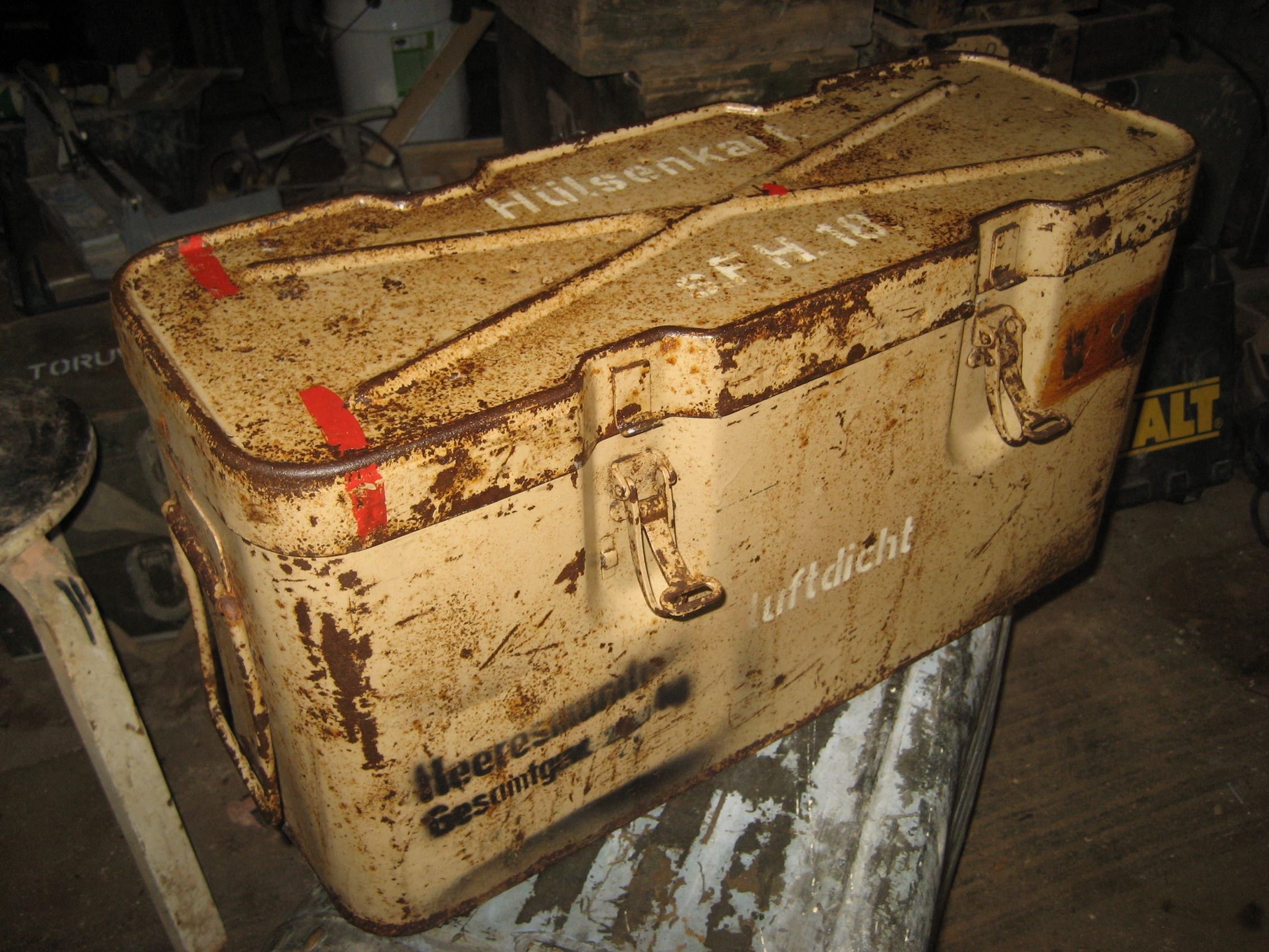 Mul on kuskil 2 TM42 kesta, naabrivana prügihunnikust pärit, ütles, et peale sõda tehti need käppelt tühjaks ja sisu kasutati putukatõrjeks. Põhjad on robusteselt eraldatud ja plekiosa on selline kehvemapoolne, aga pritsi ja pahtliga saaks kasti täiteks seeni teha küll.
