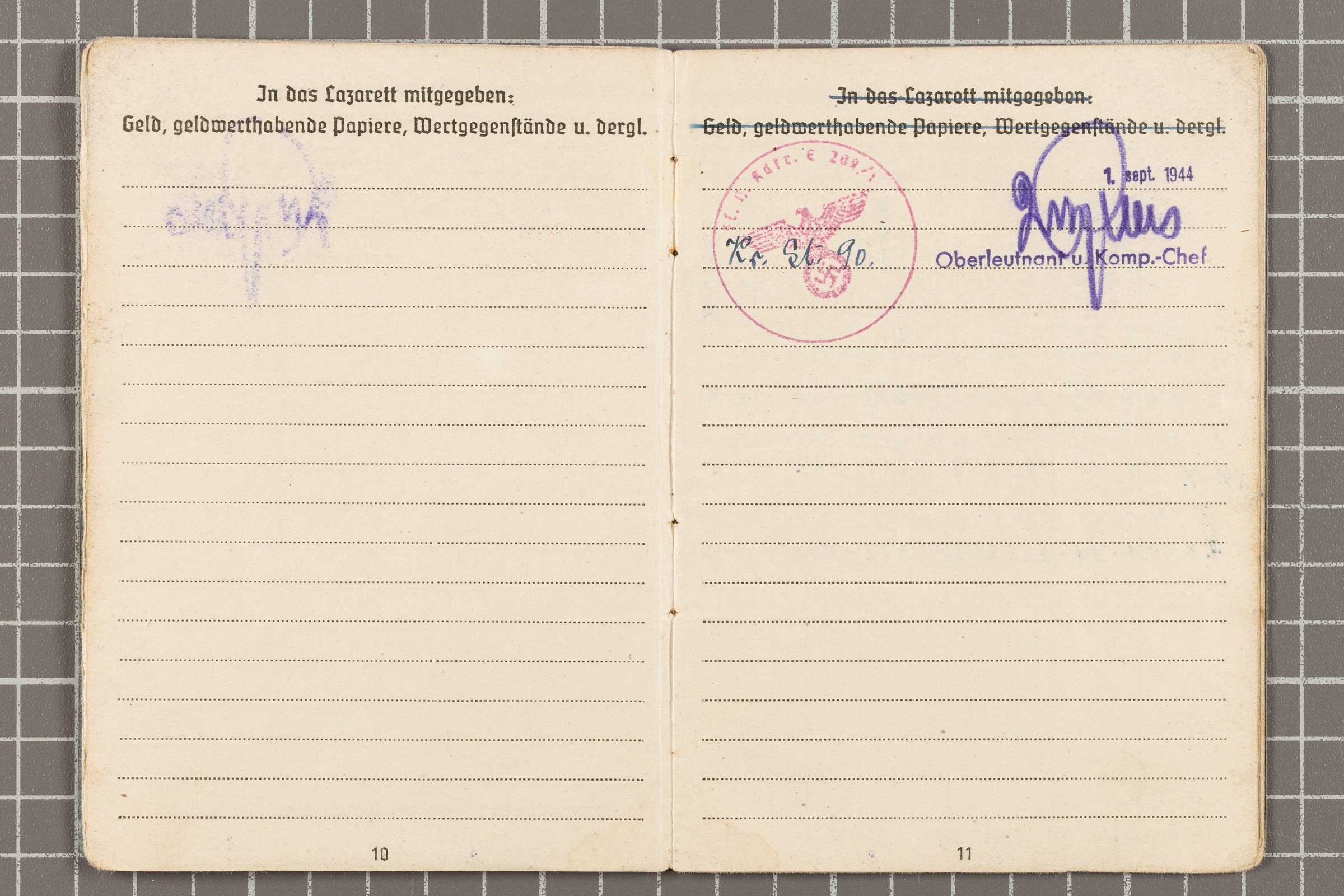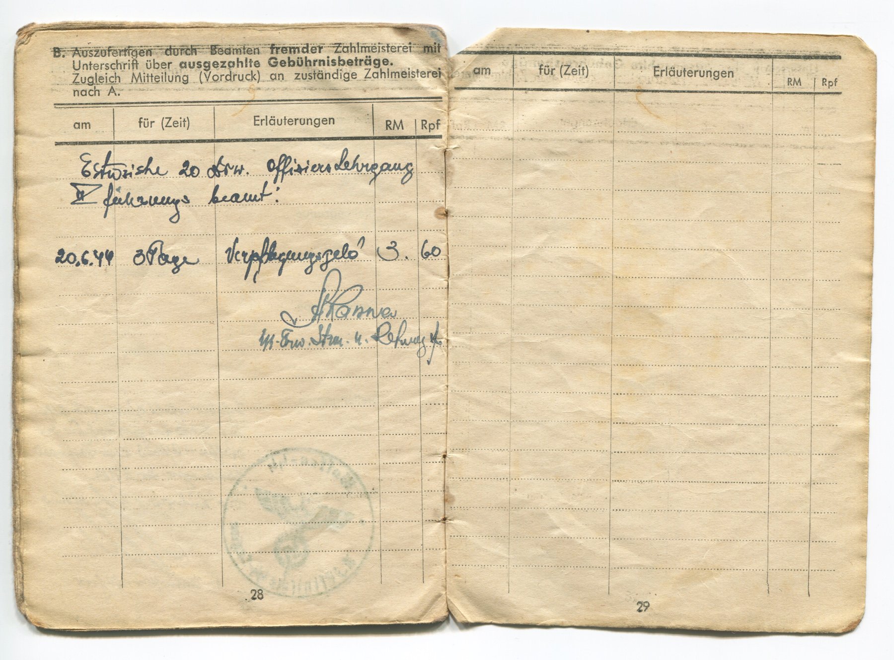 Palgaraamatus on ka mitu Waffen-Sturmbannführer August Vask'i VR II/2, II/3 allkirja, kes oli 20. SS väljaõpperügemendi ülem.