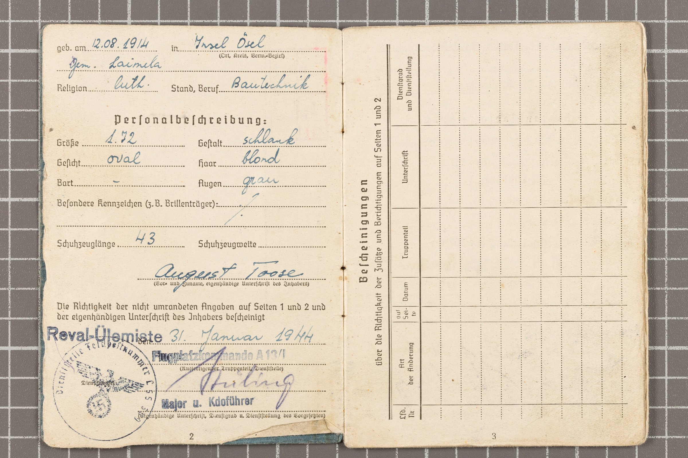 Unteroffizier August Toose Soldbuch (Eesti Sõjamuuseum, KLM ET 6151:35 F7)