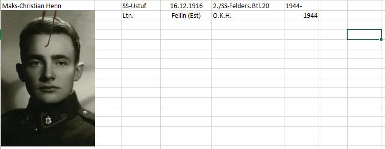 Georg S.: the information about Maks Henn is wrong. He never served in the Feld.Ers.Btl.20! He served as Kp.Fhr of the 2./SS-Btl."Reval" (Einheit "Fischer").